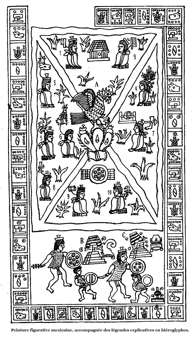 Note 156: (retour) Je laisse de Côté l'écriture calculiforme des Mayas du Yucatan, trop imparfaitement connue, mais qui, comme je l'ai déjà dit plus haut, parait être arrivée d'une manière indépendante à la conception de l'alphabétisme.