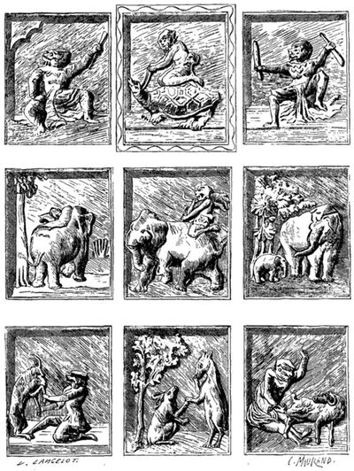 Note 5: Dagobahest le nom donné aux temples de Ceylan; il signifie, en sanscrit, réceptacle des reliques. On suppose généralement que notre expression de pagode est une corruption de ce mot. Chaitys désigne les temples bouddhistes; Bo-phyaest le nom des pagodes en forme d'œuf ou de potiron.[Retour au Texte Principal]