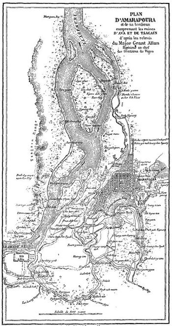 Voir: Recherches sur la géographie des anciens, par R. F. J. Gosselin, vol. III, Paris, 1813.—Marco Polo, édition de la Société de géographie de Paris.—Voyages de César-Frédérick, dans Purchass, vol. II, 1717.—Id., de Nicolo Conti dans Romusio, vol. I, 340.—History of the Discovery and conquest of India by the Portuguese, London, 1695, vol. II, 134-8.—Valentin, Description of the Dutch east Indies, 1726, vol. V, p. 126.—Dalrymple, Oriental repertory.—Symes, Account of an ambassade to Ava, 1800, in-4.—Hiram Cox, Journal of a residence in the Burman empire, London, 1821, in-8.—J. Crawfurd, Journal of an ambassady to the court of Ava, 1829, in-8.—Burney, Journal to Ava, 1830.—Id. Historical Review of the political relations between the British government in India and the empire of Ava, 1834.—Rév. docteur Mason, Natural productions of Burma, Maulmain, 1850.—Colonel Hannay, A journey to the upper Irawady in 1835-36 (manuscrit).