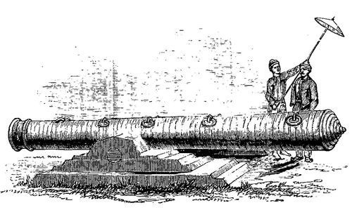Ils restèrent avec nous jusqu'à midi et furent en général fort aimables. Les trois woon-gyis les plus âgés se montrèrent, comme toujours, gais, plaisants et de belle humeur. Le vieux seigneur de Mein-loung parut s'intéresser fort au progrès de la guerre de Crimée, et demanda même la permission d'écrire mes réponses à ses questions. Toutes se rapportaient à la distance de l'Angleterre à Sébastopol, à Saint-Pétersbourg, et de ces villes (p. 302) aux Indes, au nombre des navires de guerre, des hommes et des canons employés de part et d'autre. Un tsa-ye-gyi, ou secrétaire, se hâtait de transcrire mes réponses sur son noir agenda avec son crayon de stéatite, lorsque l'on nous annonça le déjeuner.