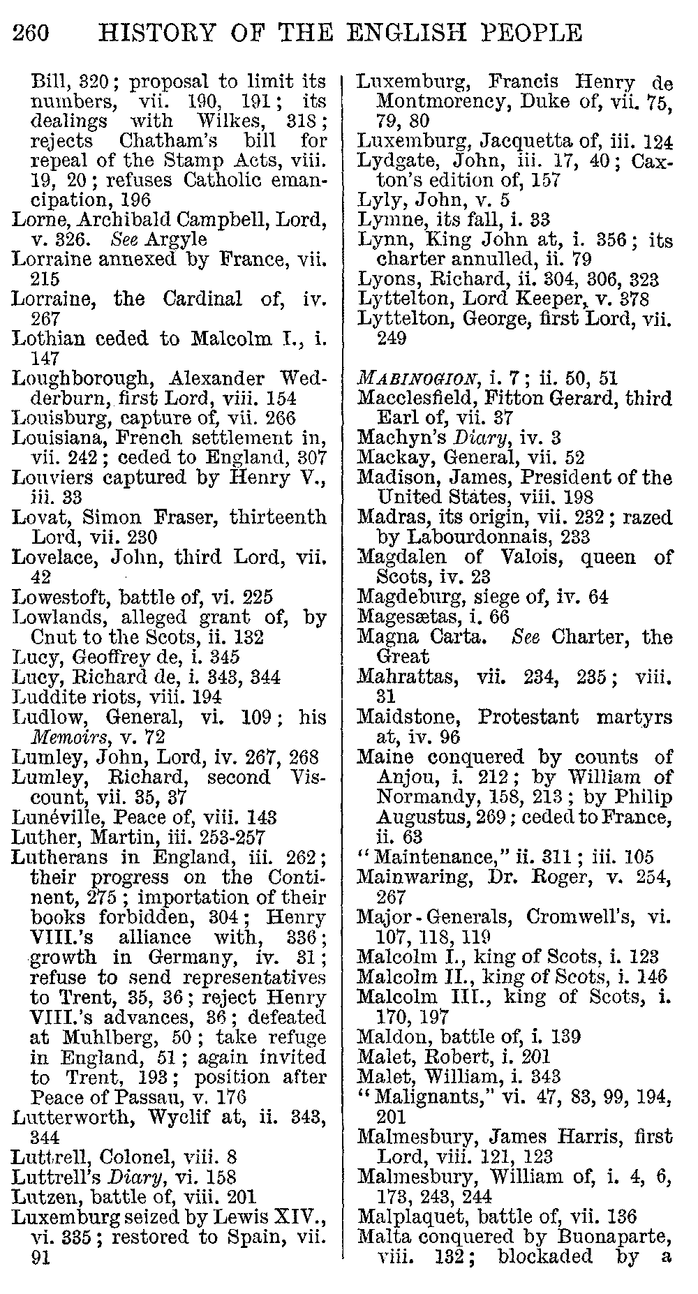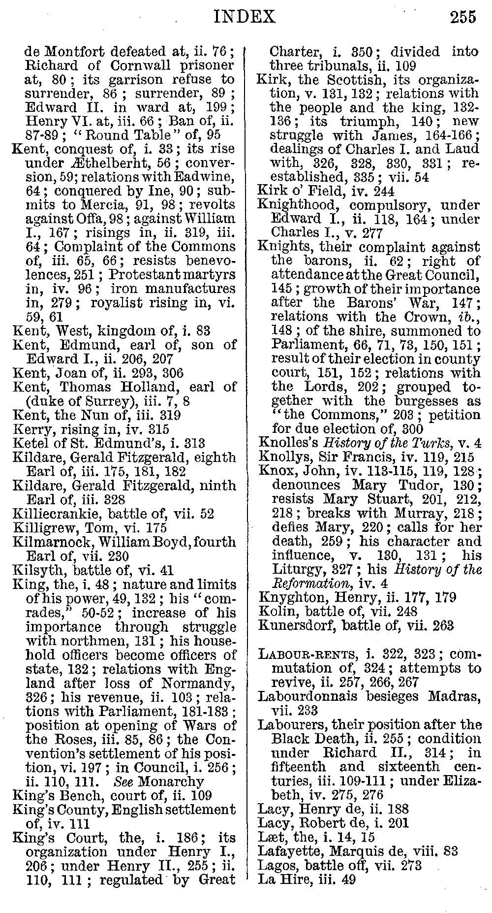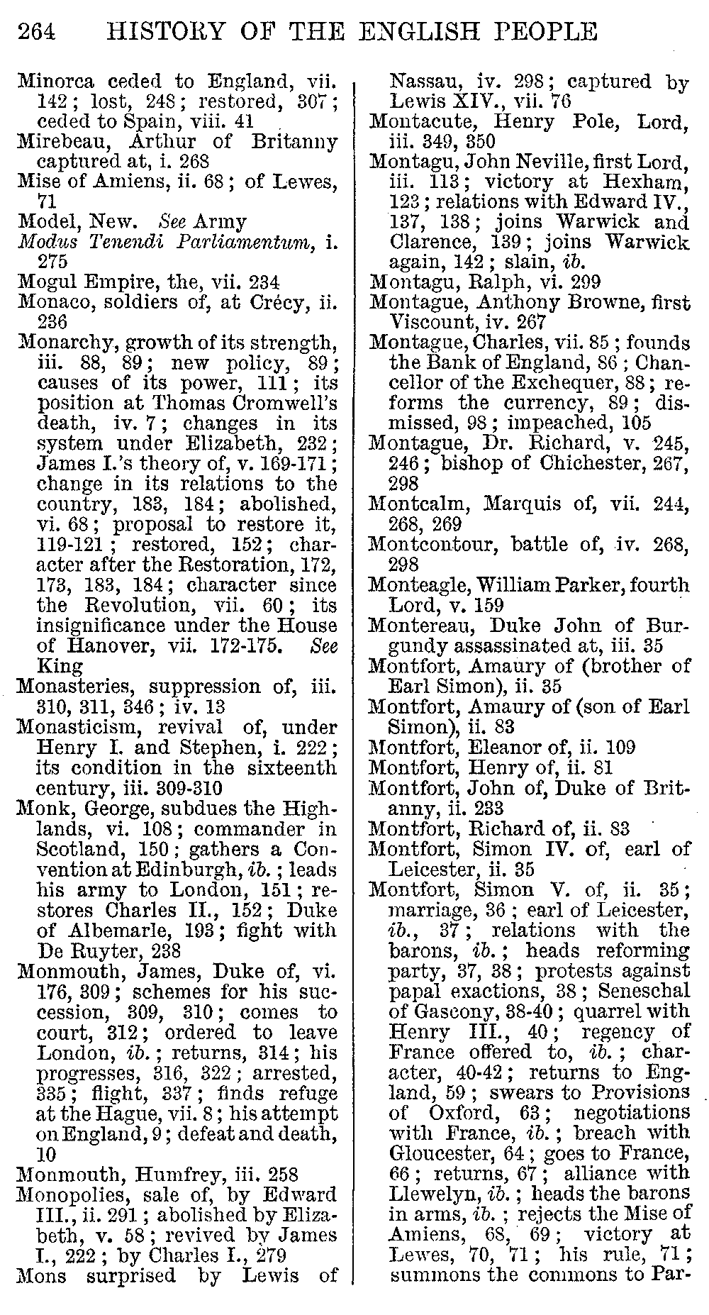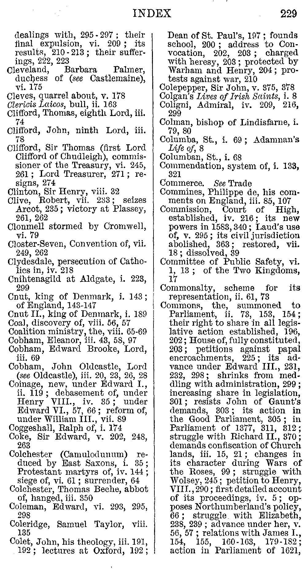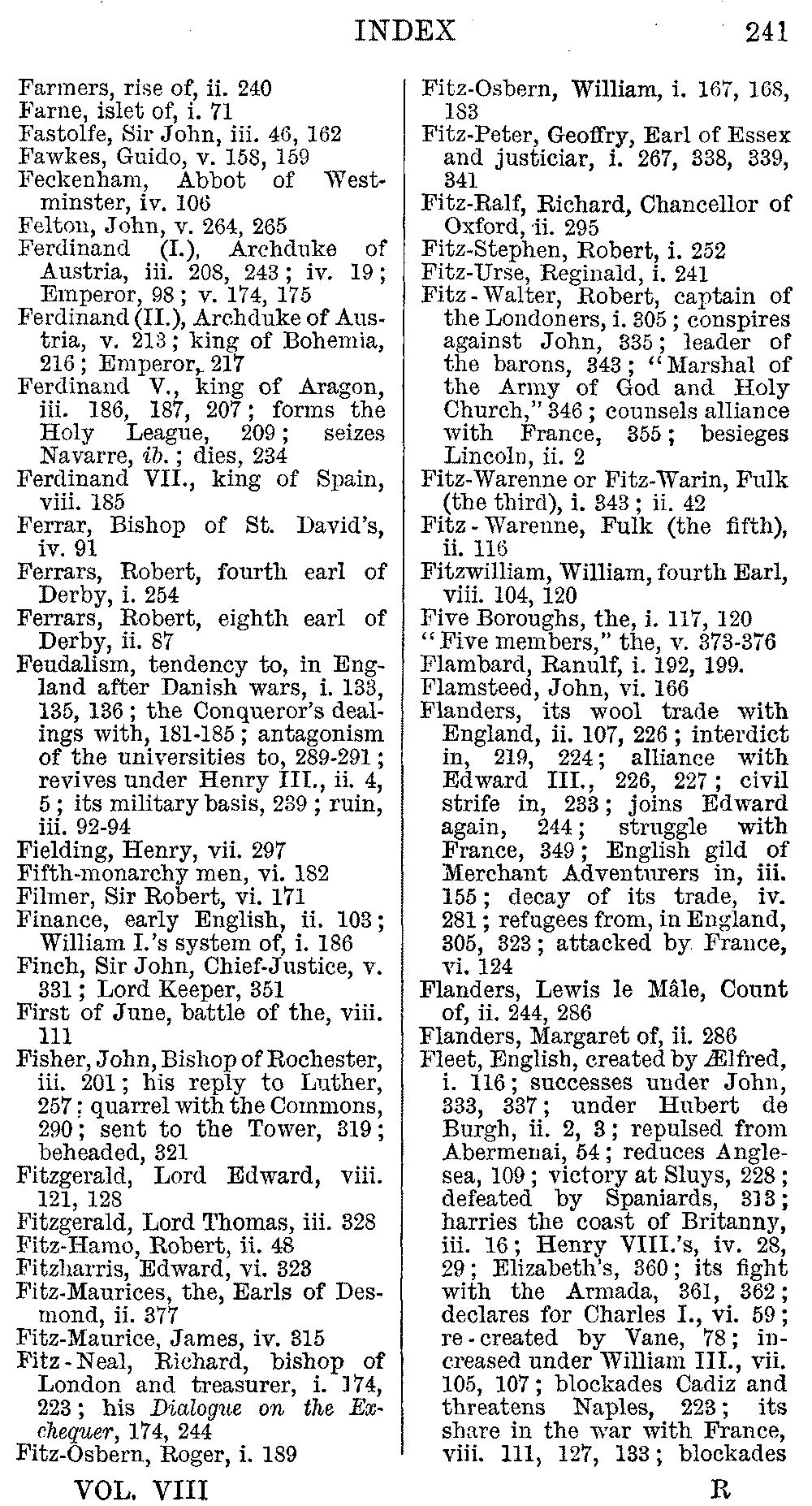 This is the index for the 8 volume set of History of the English People. It was included at the end of Volume VIII in the original. For ease in accessibility, it has been removed and produced as a separate volume. Click on the page number to see an image of the page.