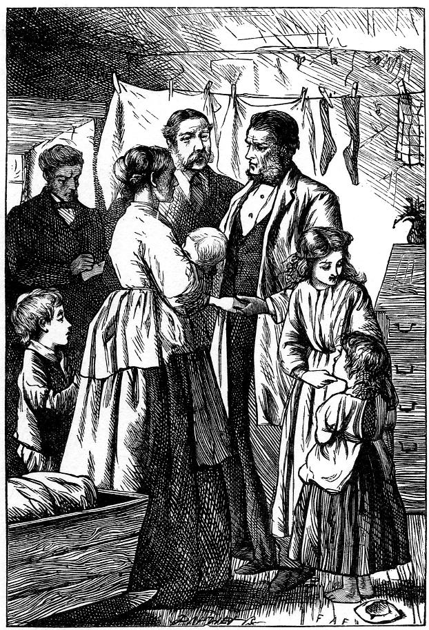 "Not for a day, papa! Surely you will not leave me alone? There will be plenty of room now. The air of Fulham will be better for your work than those stuffy, dark, dingy lawyers' chambers."