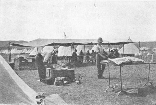 On arriving at Ladysmith, tents, equipment, mules, and, in fact, all that had been lost at Dundee, were issued, and the battalion went into camp near the cemetery.