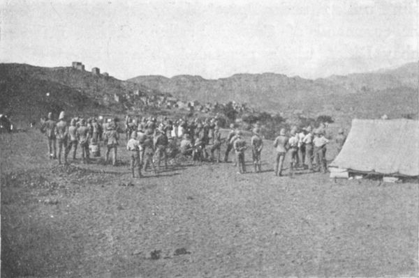 Footnote 15: Half-battalion Royal Dublin Fusiliers, one company Somerset Light Infantry, two guns 28th Battery Royal Field Artillery, and twenty Marshall's Horse.[Back to Main Text]