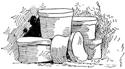 The chemist said that all he had done ought to have taken out the salt. The theory remained the same, although the experiment had failed. Perhaps a little starch would have some effect. If not, that was all the time he could give. He should like to be paid, and go. They were all much obliged to him, and willing to give him $1.37-1/2 in gold. Gold was now 2.69-3/4, so Mr. Peterkin found in the newspaper. This gave Agamemnon a pretty little sum. He sat himself down to do it. But there was the coffee! All sat and thought awhile, till Elizabeth Eliza said, "Why don't we go to the herb-woman?" Elizabeth Eliza was the only daughter. She was named after her two aunts,—Elizabeth, from the sister of her father; Eliza, from her mother's sister. Now, the herb-woman was an old woman who came round to sell herbs, and knew a great deal. They all shouted with joy at the idea of asking her, and Solomon John and the younger children agreed to go and find her too. The herb-woman lived[17] down at the very end of the street; so the boys put on their india-rubber boots again, and they set off. It was a long walk through the village, but they came at last to the herb-woman's house, at the foot of a high hill. They went through her little garden. Here she had marigolds and hollyhocks, and old maids and tall sunflowers, and all kinds of sweet-smelling herbs, so that the air was full of tansy-tea and elder-blow. Over the porch grew a hop-vine, and a brandy-cherry tree shaded the door, and a luxuriant cranberry-vine flung its delicious fruit across the window. They went into a small parlor, which smelt very spicy. All around hung little bags full of catnip, and peppermint, and all kinds of herbs; and dried stalks hung from the ceiling; and on the shelves were jars of rhubarb, senna, manna, and the like.