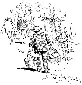 The little boys went out to pick the currants and the gooseberries, and Elizabeth Eliza went out for her[30] flowers, and Mrs. Peterkin put on her cape-bonnet, and in time they were all ready. The little boys were in their india-rubber boots, and they got into the carriage.