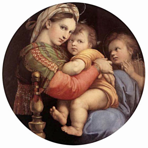 We know, too, that Raphael did not let any of his helpers work on "The Madonna of the Chair"—in Italian, "Madonna della Sedia." He painted every brush stroke himself, which makes it still more dear to us.[27]