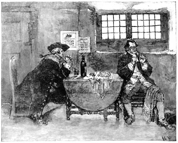 So saying he was as good as his word, and not only drew the shutters to, but shot the heavy iron bolt into its place. Having accomplished this he bade our hero to be seated, and placing before him some exceedingly superior rum, together with some equally excellent tobacco, they presently fell into the friendliest discourse imaginable. In the course of their talk, which after a while became exceedingly confidential, Jonathan confided to his new friend the [225]circumstances of the adventure into which he had been led by the beautiful stranger, and to all that he said concerning his adventure his interlocutor listened with the closest and most scrupulously riveted attention.