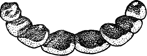 Fig. 4.—Internal face of incisors at 4 years.At 4½ to 5 years the corner teeth are replaced, the animal at 5 years having the full complement of incisors with the corners fully developed.