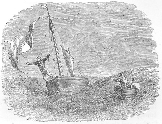 Meanwhile we are sailing on to Sheerness; and no wonder that the Rob Roy fixes many a sailor’s eye, for the bright sun shines on her new white sails, and her brilliant-coloured flags flutter gladly in the wind as the waves glance and play about her polished mahogany sides, the last and least addition to the yacht fleet of England.