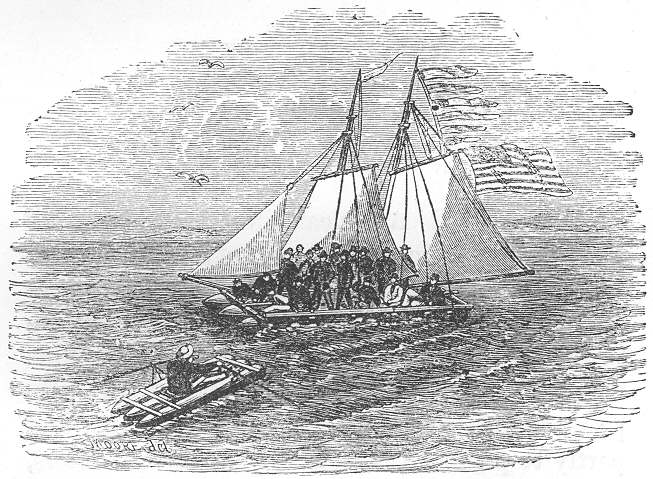 One great advantage of the larger size, was that it enabled me to carry in the cabin of my yawl, another boat, a little dingey [3] or punt, to go ashore by, to take exercise in, and to use for refuge in last resource if shipwrecked, for this dingey also I determined should be a lifeboat, and yet only eight feet long. The childhood of this little boat was somewhat unhappy, and as she grew into shape she was quizzed unmercifully, and the people shook their heads very wisely, as they did at the first Rob Roy canoe. Now that we can reckon about three thousand of such canoes, and now that this little dingey has proved a complete success and an unspeakable convenience, the laugh may be forgotten. However, ridicule of new things often does good if it begets caution in changes, and stimulates improvement. Good things get even benefit from ridicule, which may shake off the plaster and paint, though it will not shiver the stone.