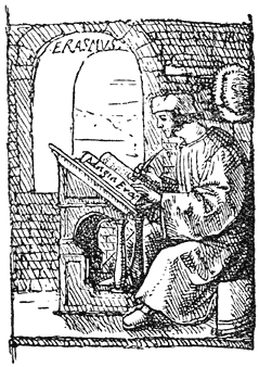 Een tweede zaak, die den lezer zal treffen en wellicht [7]ergeren, is het kleed, waarin Erasmus zijn satire heeft gestoken. Talloos zijn de aanhalingen uit de Oude Schrijvers, die, soms letterlijk, soms alleen wat gedachte betreft, in het betoog der Zotheid worden ingevlochten. Ook paradeeren Goden, helden en staatslieden uit de Antieke Mythologie en de Oude Geschiedenis voor onzen smaak veel te dikwijls op het tooneel. Erasmus is nu eenmaal door en door humanist, in de Oudheid voelt hij zich beter thuis dan in zijn eigen tijd en de geestverwanten, voor wie hij in de eerste plaats schrijft, eveneens. Hoe meer zijn publiek zich in die onvolprezen Oudheid kon verlustigen, des te dankbaarder was het hem. Daarbij komt nog, dat Erasmus kort te voren zijn “Adagia,” een verzameling van eenige duizenden Grieksche en Latijnsche spreekwoorden met toelichting, op nieuw had uitgegeven. Hij is er nog zoo vol van, dat hij bijv. in “de Lof der Zotheid” eenzelfde spreekwoord (“de ezel bij de lier”) tot viermaal toe herhaalt.