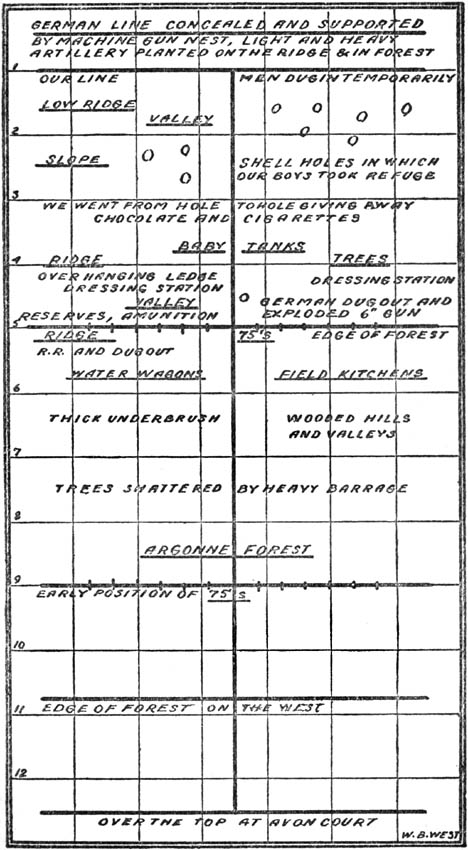For ten wonderful days my duties took me (on foot, by touring-car, by truck, and by ammunition wagon) from the "rail-head" six miles behind the trenches where our boys went "over the top" on that first historic day of the Argonne drive, up to within a half mile of the day's farthest advance.