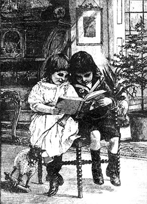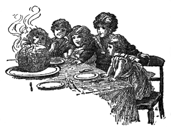 All day long the library was kept closed; not a child was allowed to peep in. But what fun they had all day, and what a Christmas dinner, with a plum pudding as big as a pumpkin.