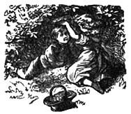 |   | One day Fred and Nelly gathered flowers in the woods, and Nelly made a wreath to put upon her cousin's head. |