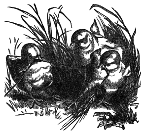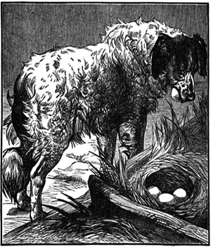 | Nelly thought the little chicks were prettier. Shep, the dog, could hunt eggs as well as they could, and he always helped them. After he had found a nest, he took each egg carefully in his mouth, and laid it in the basket which the children had brought; and he never broke one. |   |