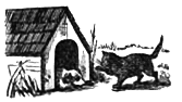 At one side of a farm-house near, a big dog was lying in his kennel, and a great black cat came up to him very slyly and tapped him on the nose with one paw. It was funny to see the dog jump up.