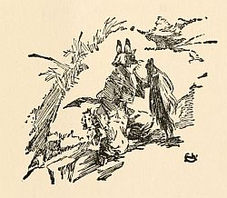 "My Grandfather Hare didn't stop a minute after he thought of that, but just set out for King Lion's house over at the foot of the Big West Hills. He had to pass by Mr. Fox's house, and Mr. Fox called to him, but Grandpaw Hare just set up his ears as proud as could be and went by, lickety split, without looking at Mr. Fox at all.