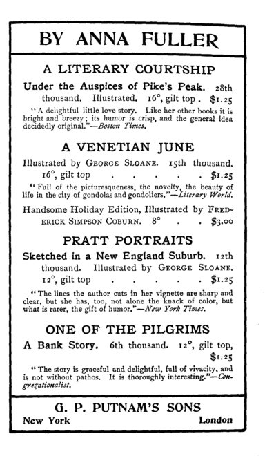 Somewhat apart from the others was a woman with a little girl whom Blythe had not before observed. The child lay on a bright shawl, her head against the woman’s knee, her dark Italian eyes gazing straight up into the luminous blue of the sky. There was a curiously high-bred look in the pale features, young and unformed as they were, and Blythe wondered how such a child as that came to belong to the stout, middle-aged woman who did not herself seem altogether out of place in the rough steerage.