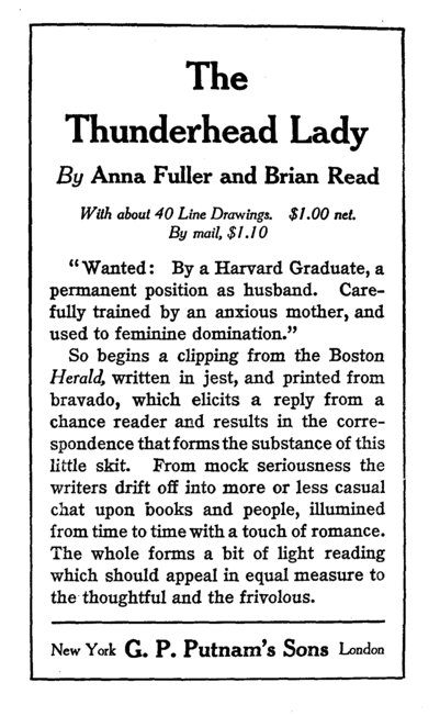 “The Captain says he will have the 13 ‘crow’s nest’ lowered and let you go up in it if you like,” was the startling announcement which roused her from her revery.