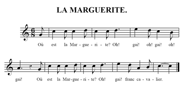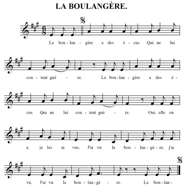 Savez-vous planter des choux? La mistenlaire Biron Ramène tes moutons J'aimerai qui m'aime Il faut que le mal cède La bonne aventure La marguerite Meunier, tu dors La vieille Mon père m'a donné un mari Riche et pauvre Le rat de ville et le rat des champs Chanson de la mariée |