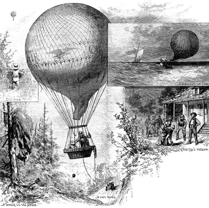 The Professor told Charley a great many things about his voyages. Once he was blown out to sea, and when he had almost given up hope, the rope was overtaken by a sail-boat in pursuit, and he was towed ashore; again, he had floated over burning forests, and once came to the earth from the weight of snow on the balloon; and once, too, his balloon was torn in the top of a high tree.