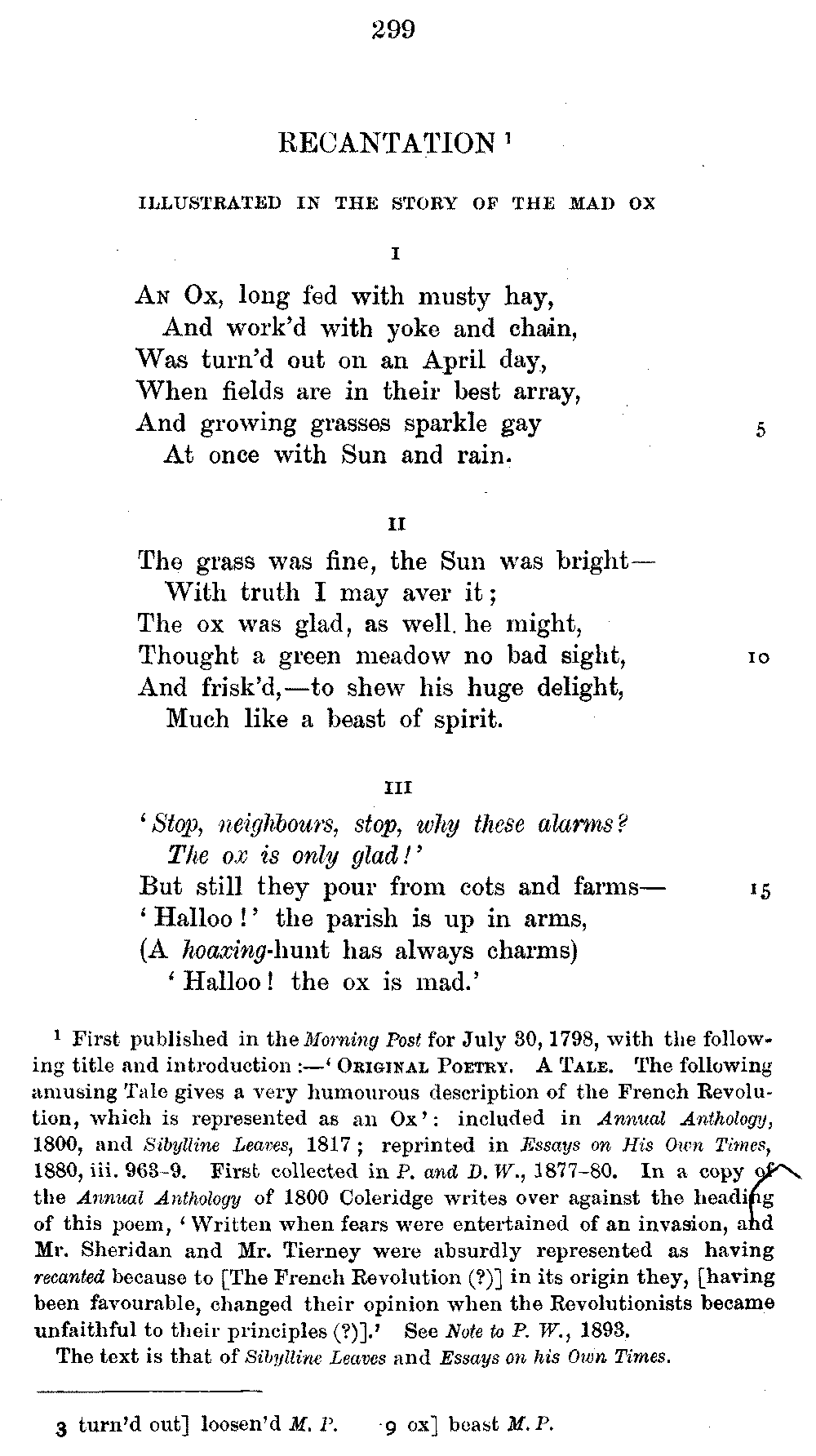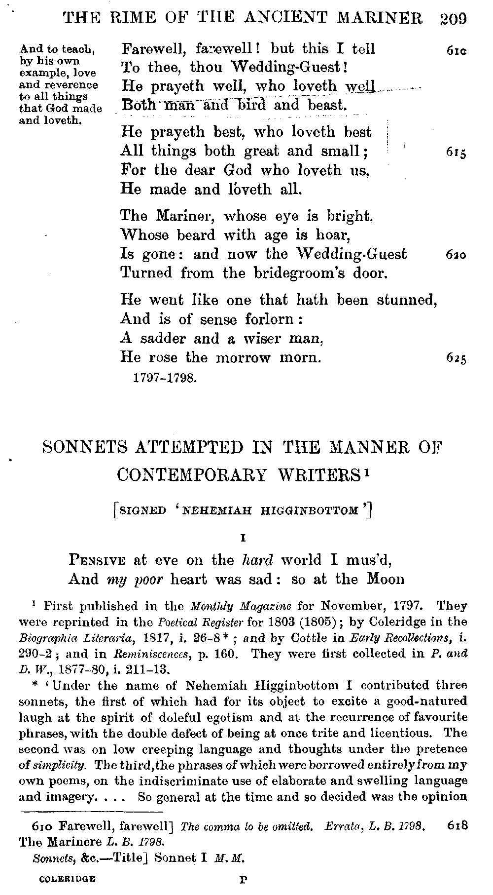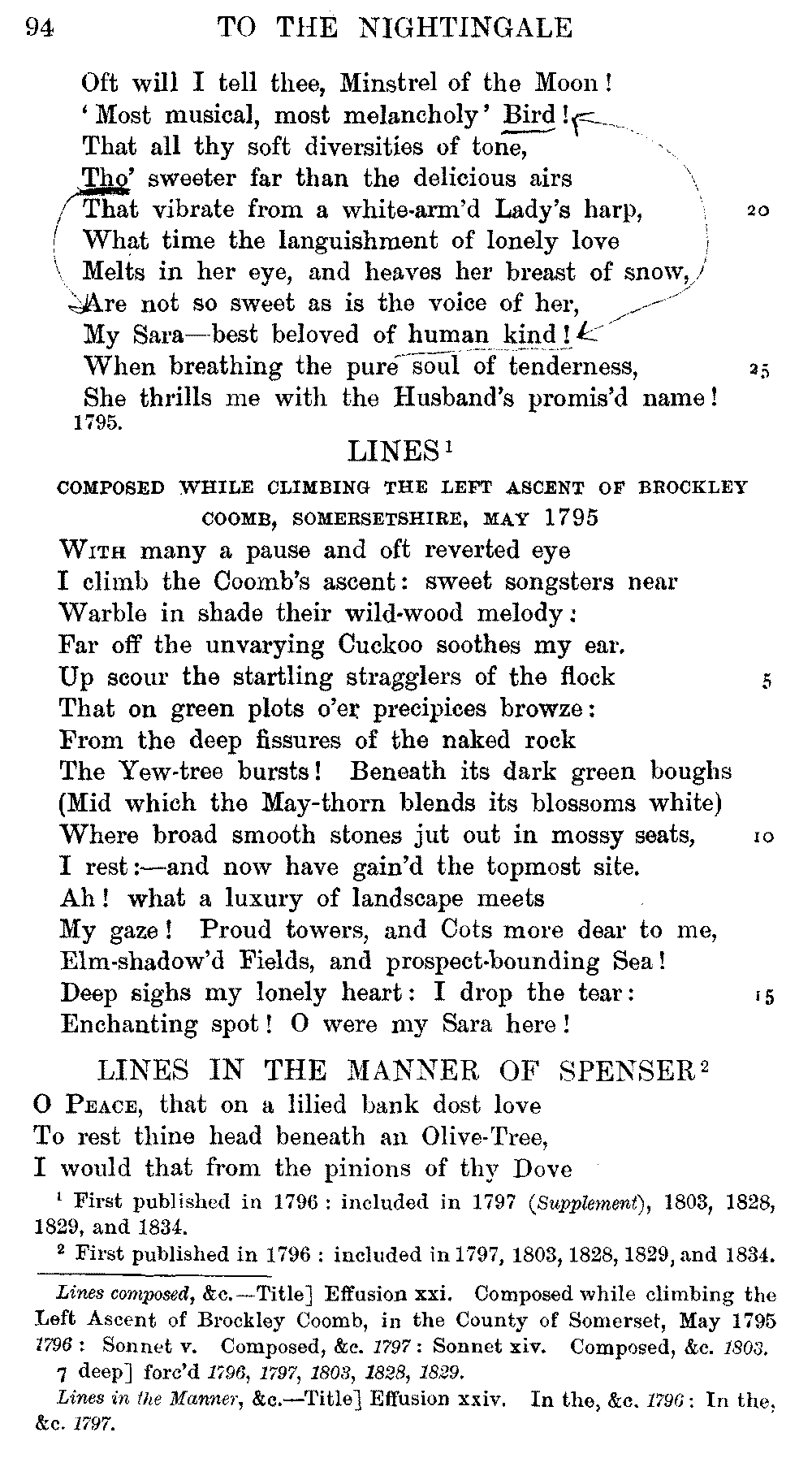 conclusive proof that, here and there, Coleridge altered and emended the
