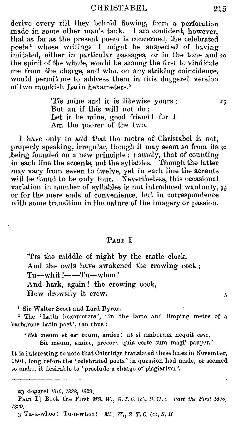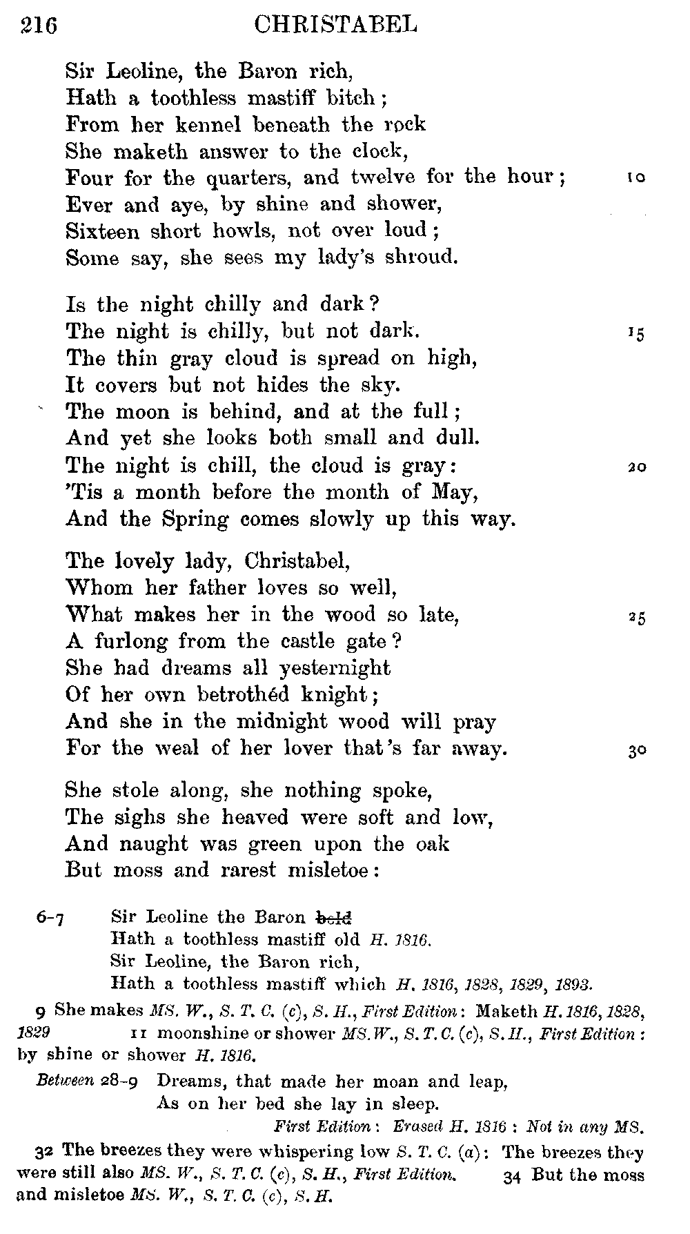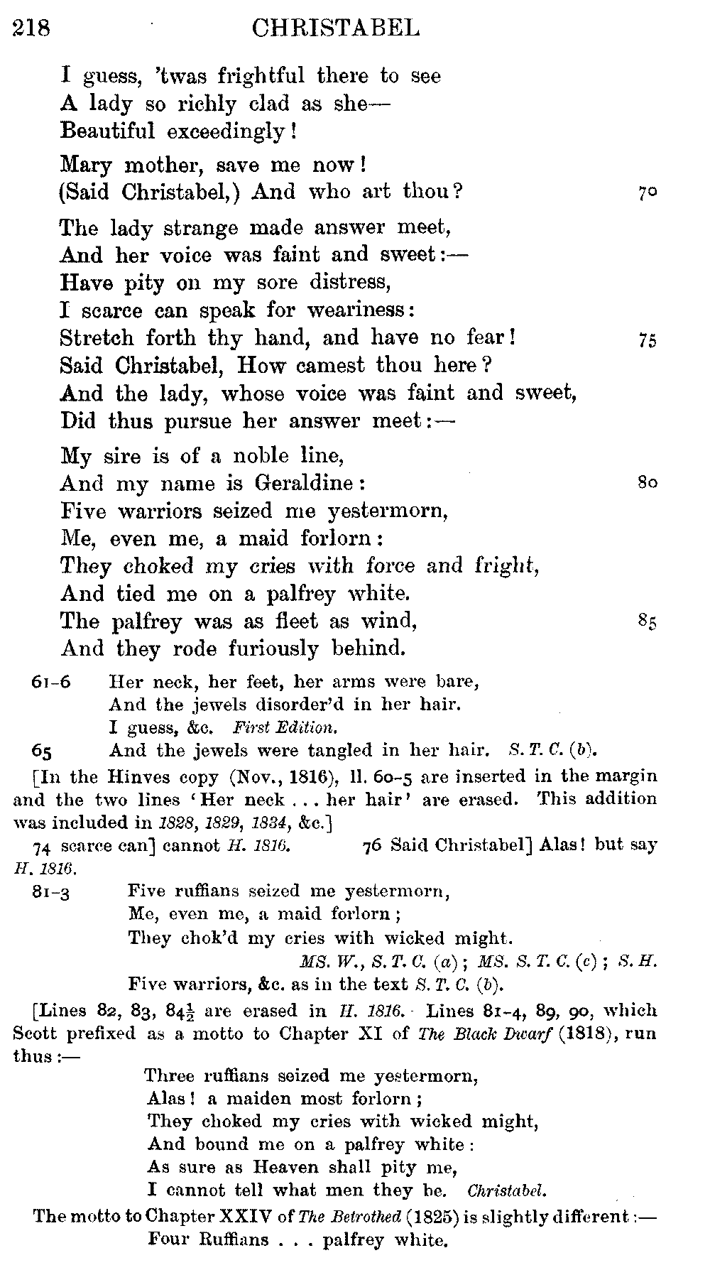 readings of 1829 and all previous editions. Again, in 'Christabel' lines