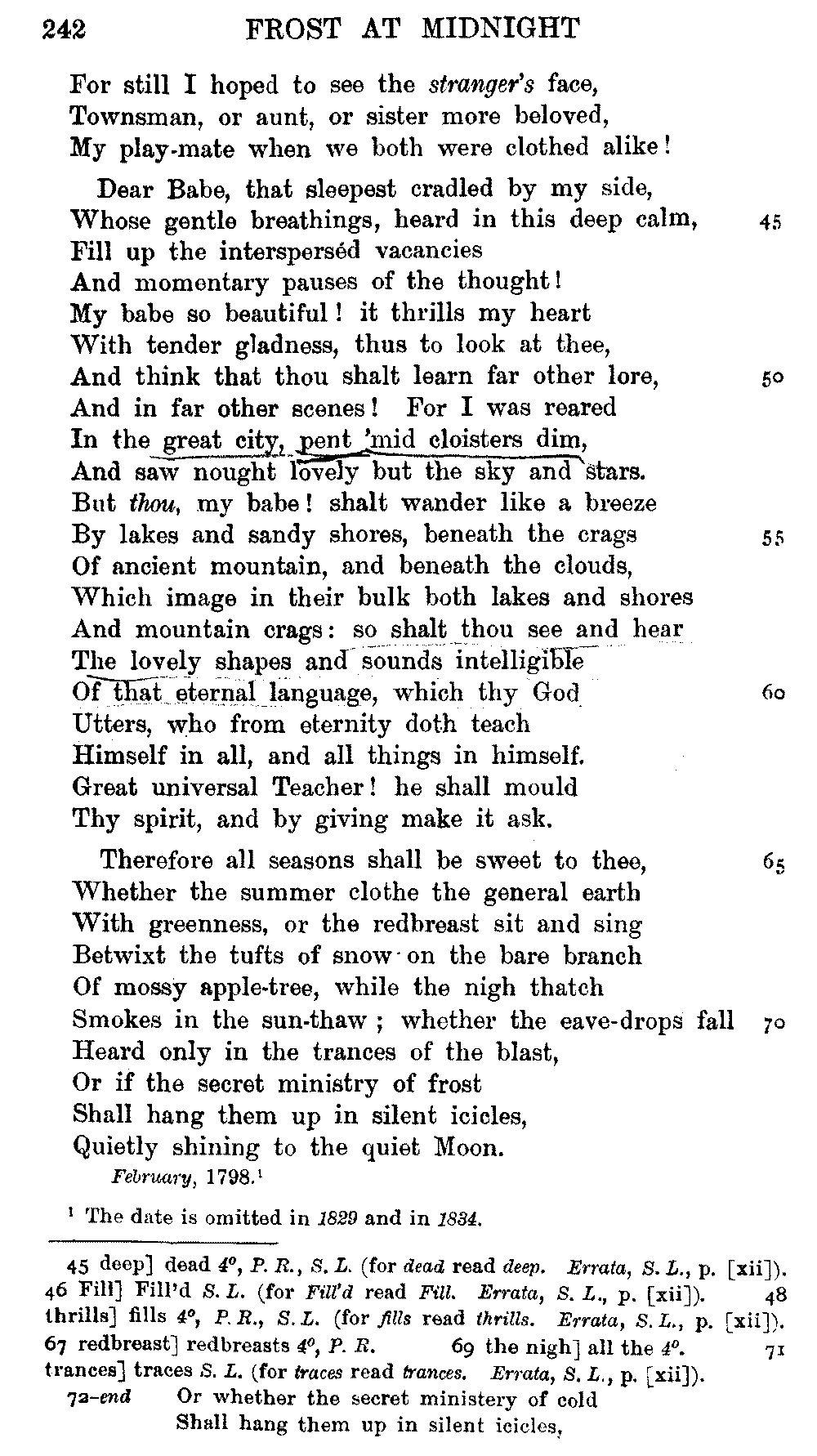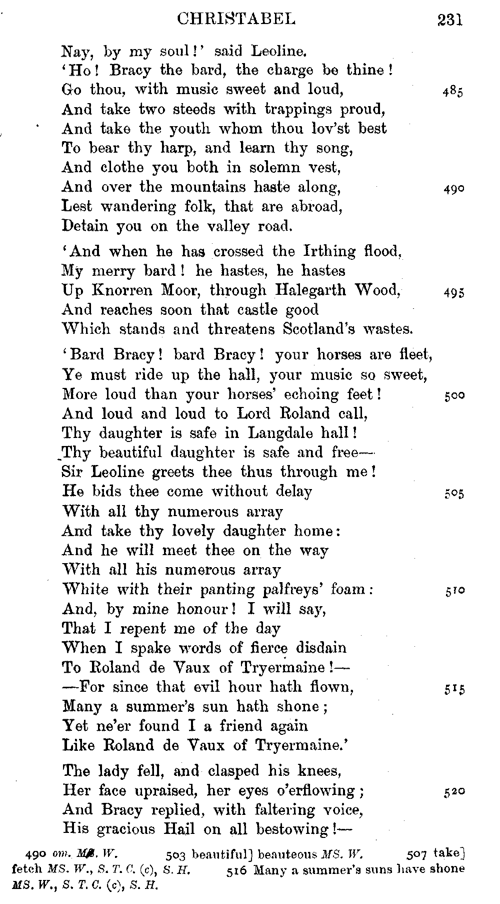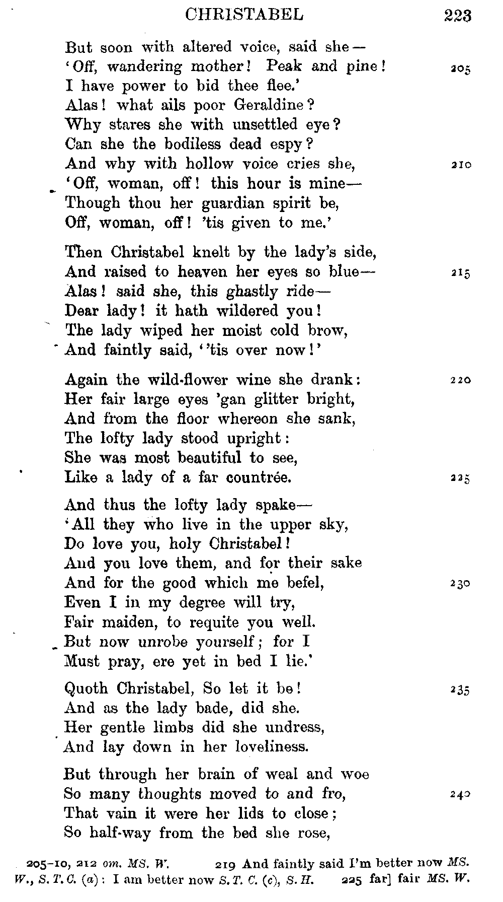 readings of 1829 and all previous editions. Again, in 'Christabel' lines
