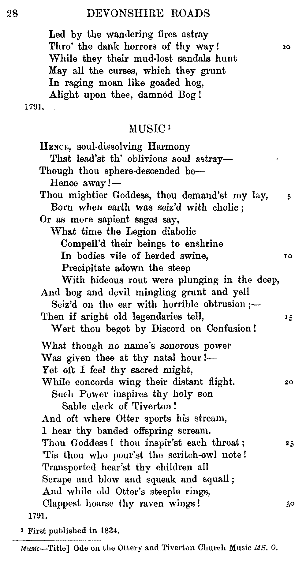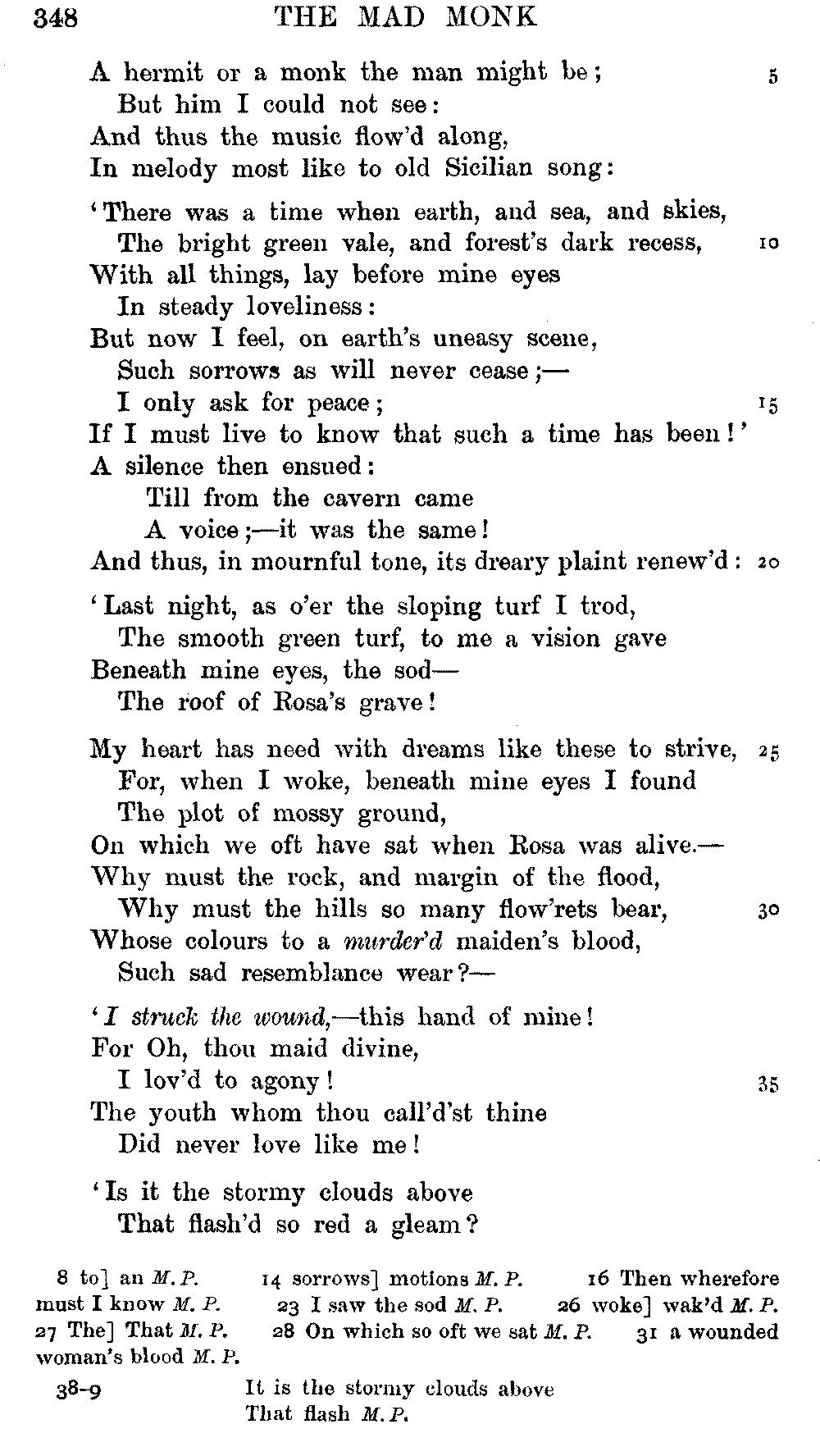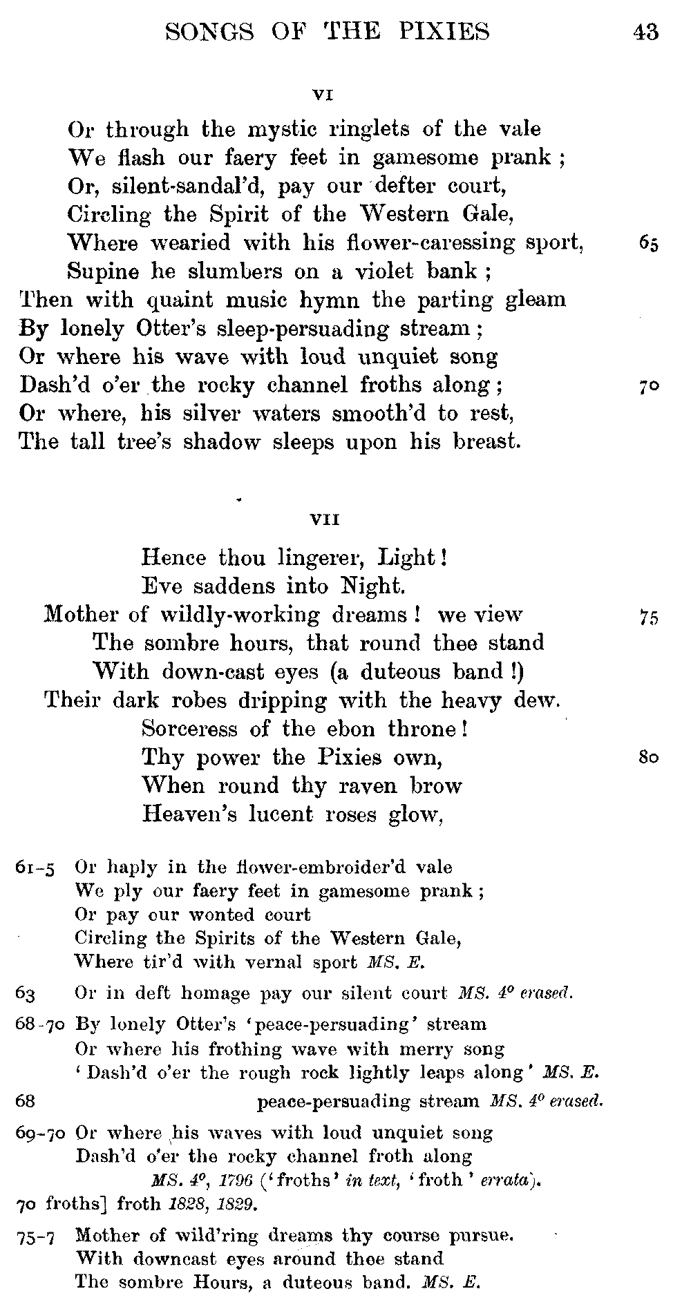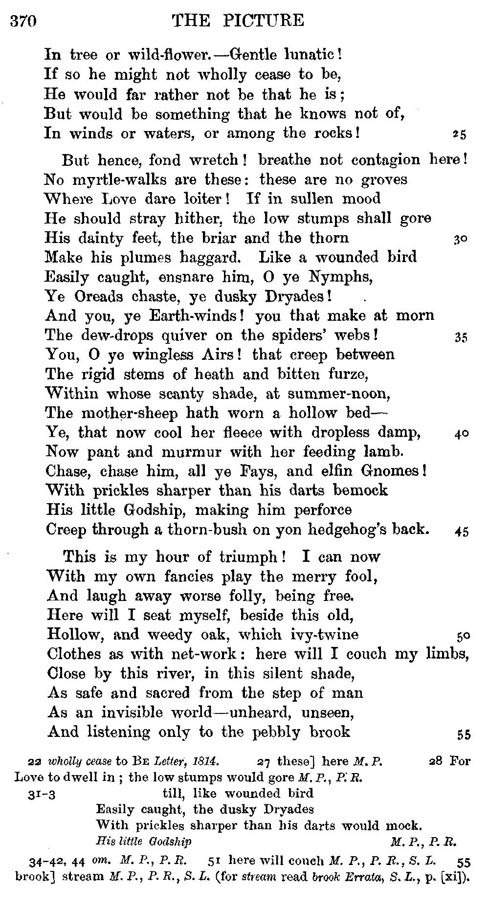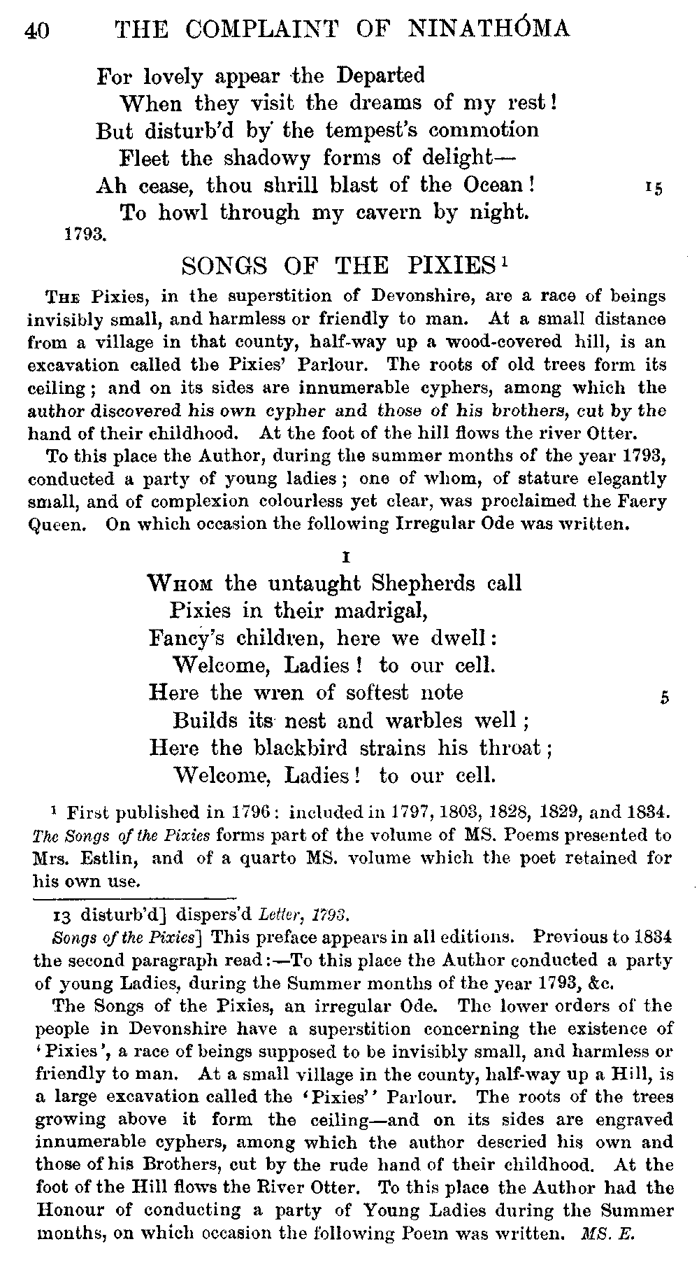 Pixies', lines 9, 11, 12, 15, 16, as printed in 1834, differ from the