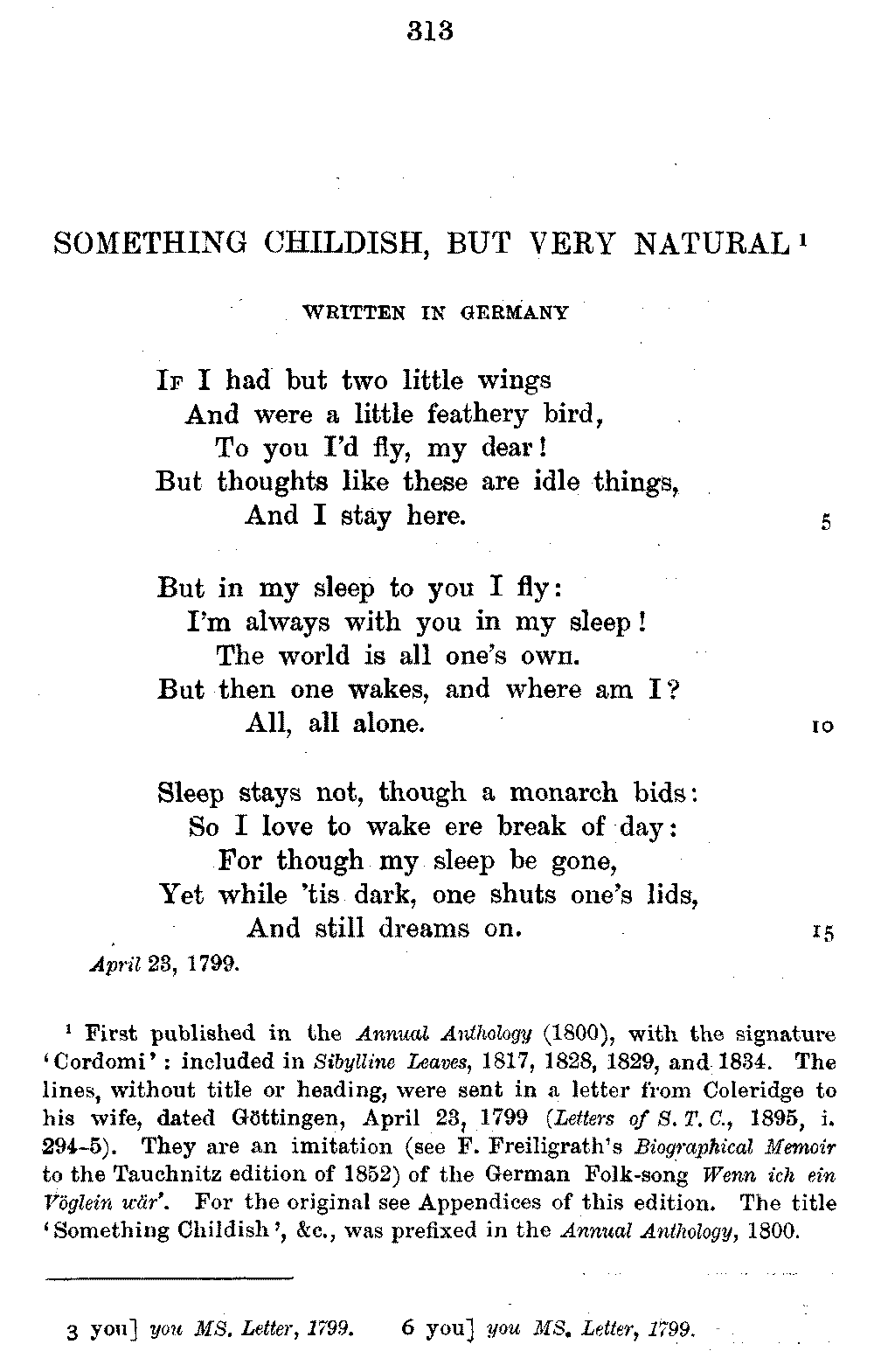 page 256: Title] Fears &c. Written, April 1798, during the Alarms of