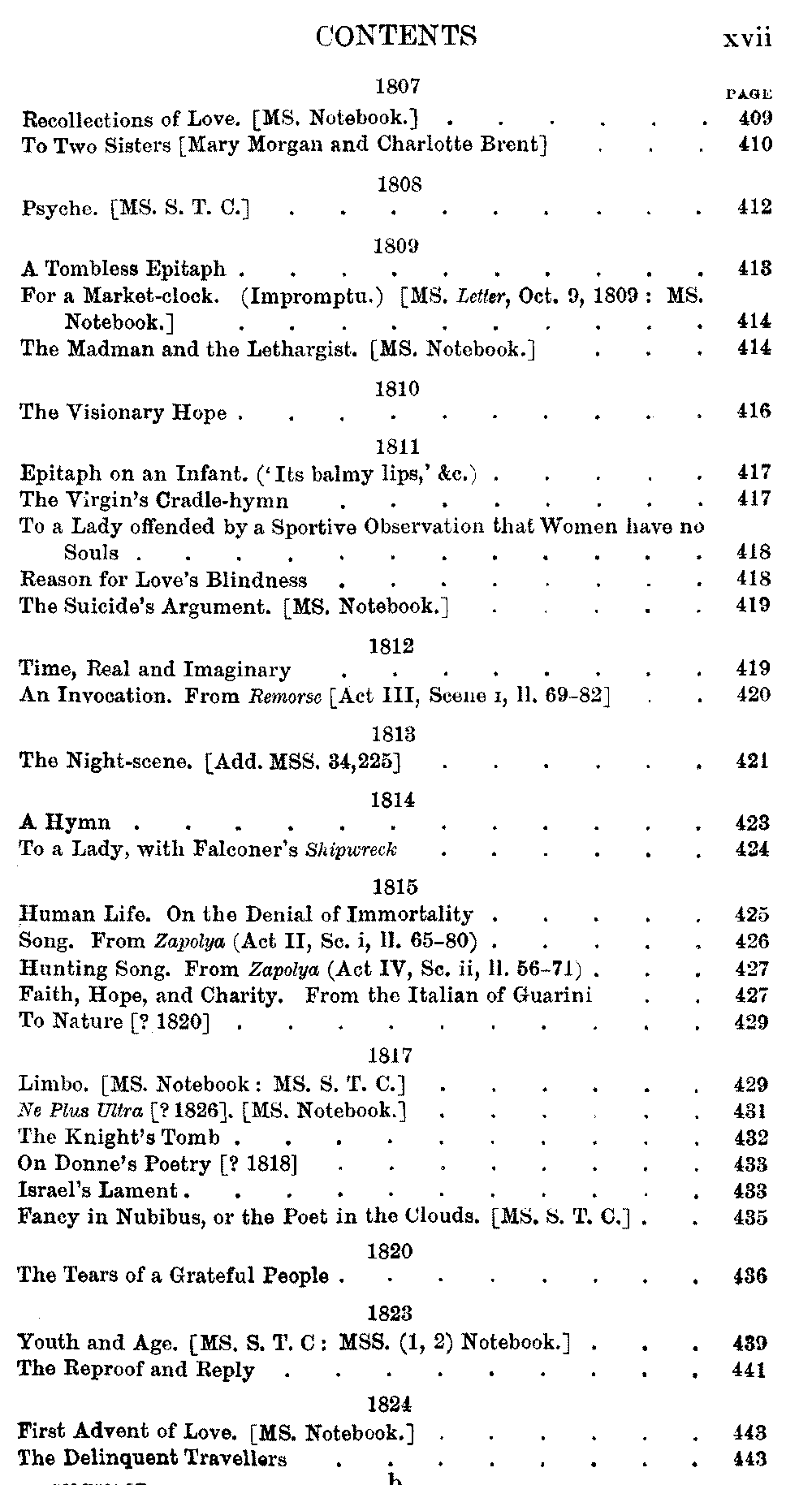 page xvii: Youth and Age. [MS. S. T. C.:{original is missing