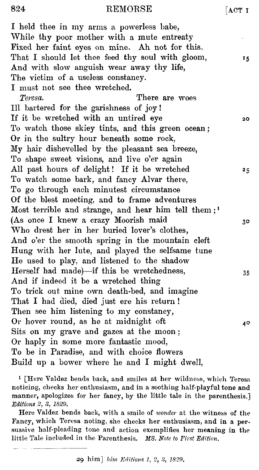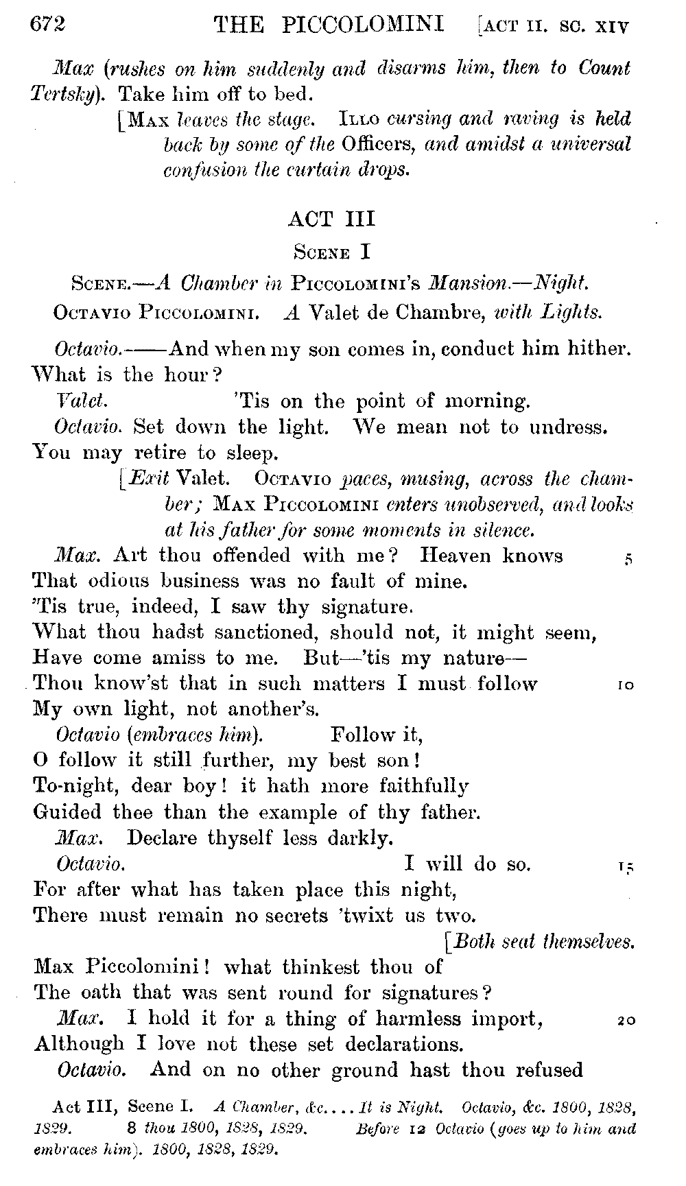 In the Preface to "The Death of Wallenstein," the lines are numbered.