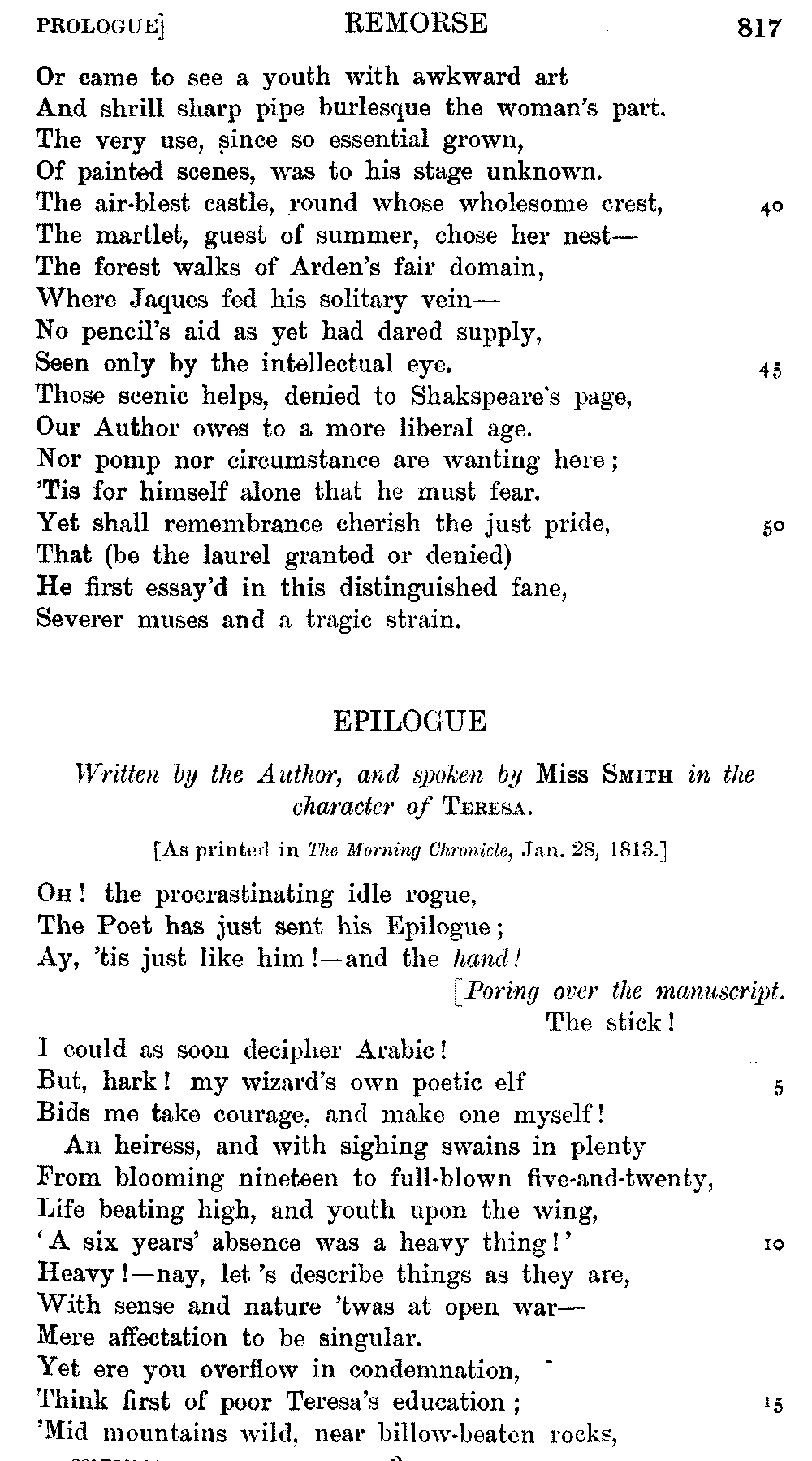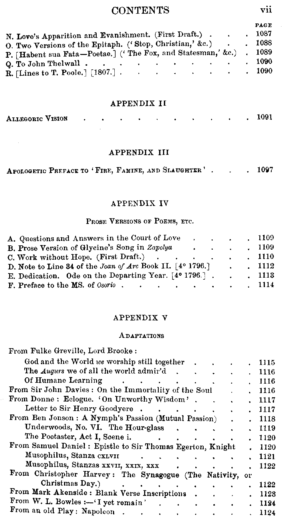 In Appendix I, part of the poem "Youth and Age" has numbered lines.