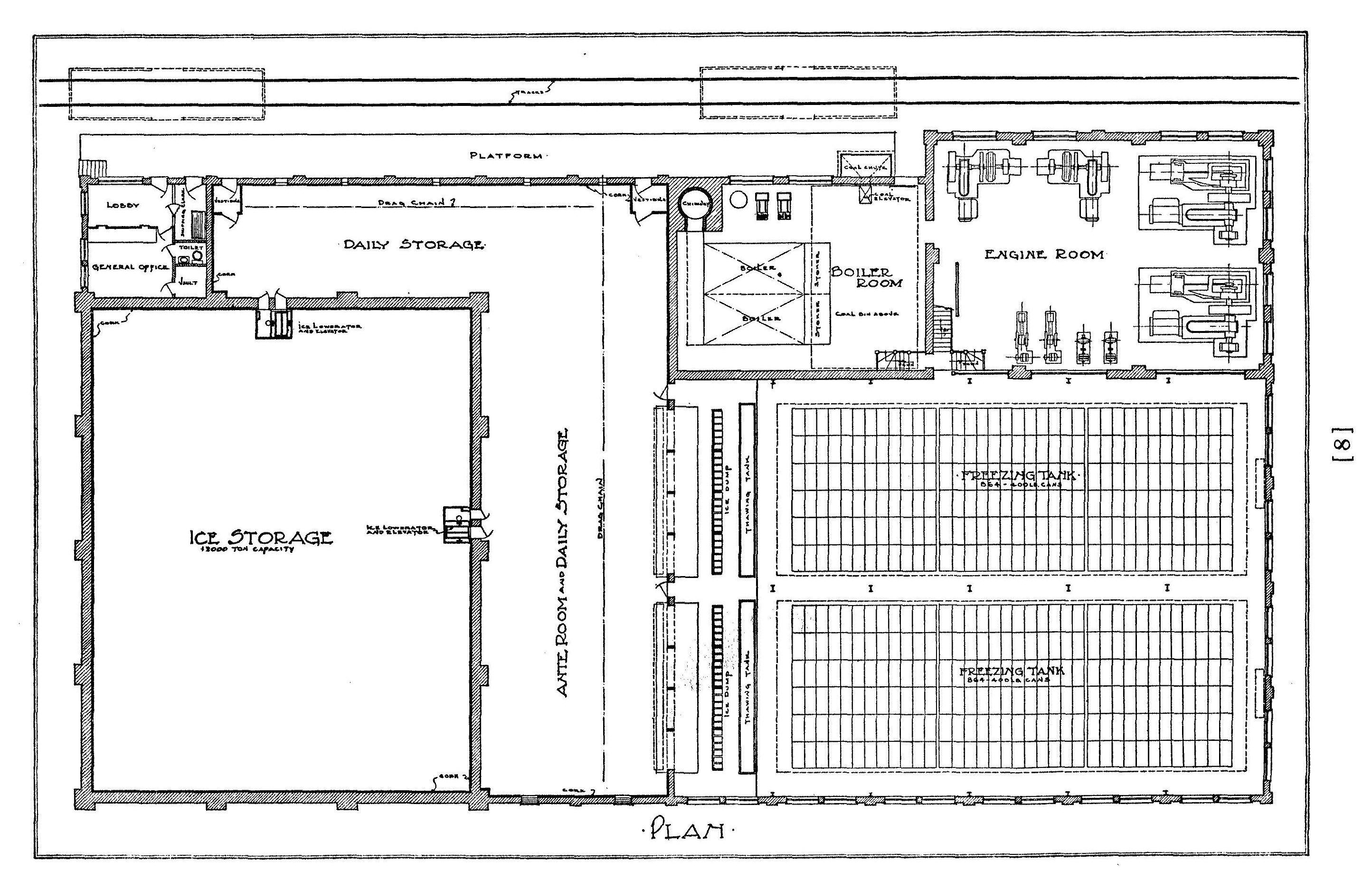 Capacity of plant, 240 tons of ice per day, using 2692 cans of 400-lb. capacity.