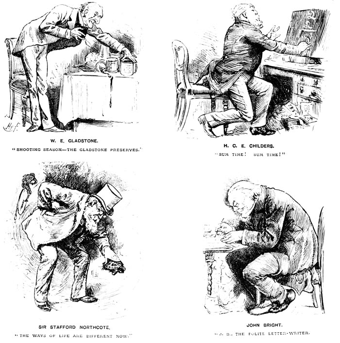 “There can be no better book for a drawing-room table, to suggest subjects of talk. The arts of engraving have made rapid progress since these pictures first appeared, but it would be hard to surpass the pregnant humour of the more famous of the political cartoons. They put the points on all the critical periods of our Parliamentary history, and indicate in effective outline the action of political celebrities.”—Times.