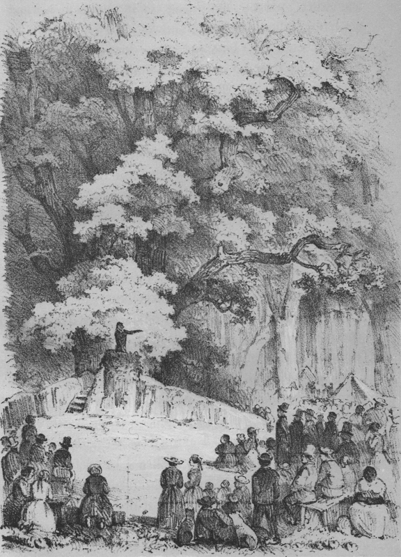 Der Termin war heute, und zwei, gerade in jenem County befindliche Geistliche, sogenannte circuit riders, die von ihren Consistorien ausgeschickt werden die noch wenig bevölkerten Distrikte, in denen keine Kirchen sind, zu durchziehn und dort zu predigen, hatten sich entschlossen für den nächsten Tag eine schon längst beabsichtigte »Betversammlung im freien Walde« anzusagen, da der Gerichtstermin ja ohnedieß eine Menge Menschen herbeiziehen mußte. Ob gerade diese Gelegenheit eine sonst passende war kümmerte sie wenig, sobald nur viel Menschen dort zusammen kamen und die Beisteuer zu ihren milden Zwecken — Kirchenbau, Missionswesen, Bibelvertheilung und Erhaltung der Geistlichen — recht reichlich ausfiel.