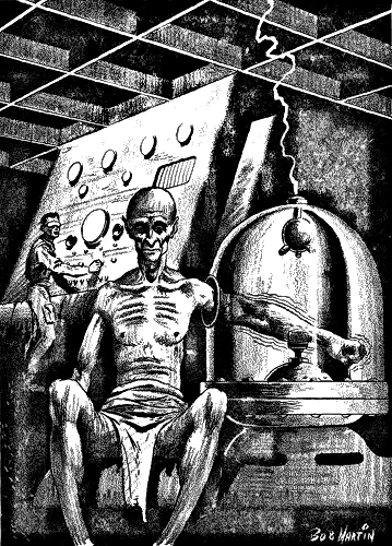 "I have an idea," Macker said. By the inflections of his tones the others knew that some incongruity of the situation had aroused Macker's sense of humor. "Why don't we give the creature an entirely new body? We could replace the flesh and viscera, as well as the cartilaginous structure, with our own type substance. It would probably be an indestructible being as far as its own world is concerned. And it would be as powerful as their mightiest machines. We'd leave behind us a superman that could change the course of this world's history. You could do it, couldn't you, Toolls?"