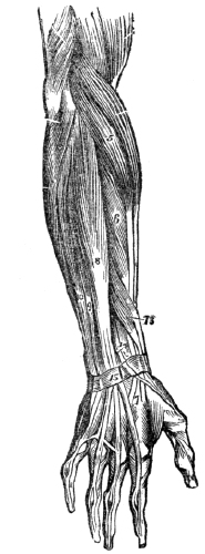 Page 459: Added ’.’ (The muscle of the forearm that moves the palm of the hand downward.)