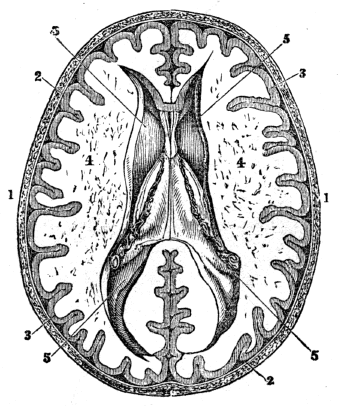 Page 330, Fig. 121: Added ’.’ (1, 1, The skull. 2, 2, the dura mater. 3, 3, The cineritious portion of the cerebrum.)