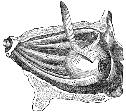 Page 399, Fig. 139: Added ’.’ (The cornea (This connects with the sclerotic coat by a bevelled edge.) 3, The choroid coat. 6, 6, The iris. 7, The pupil.)