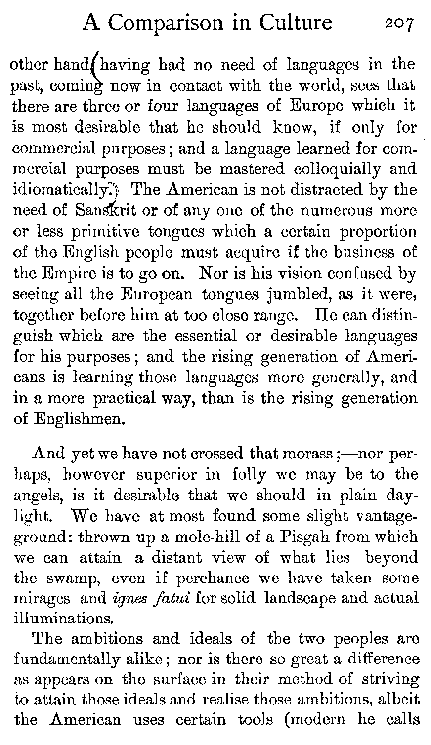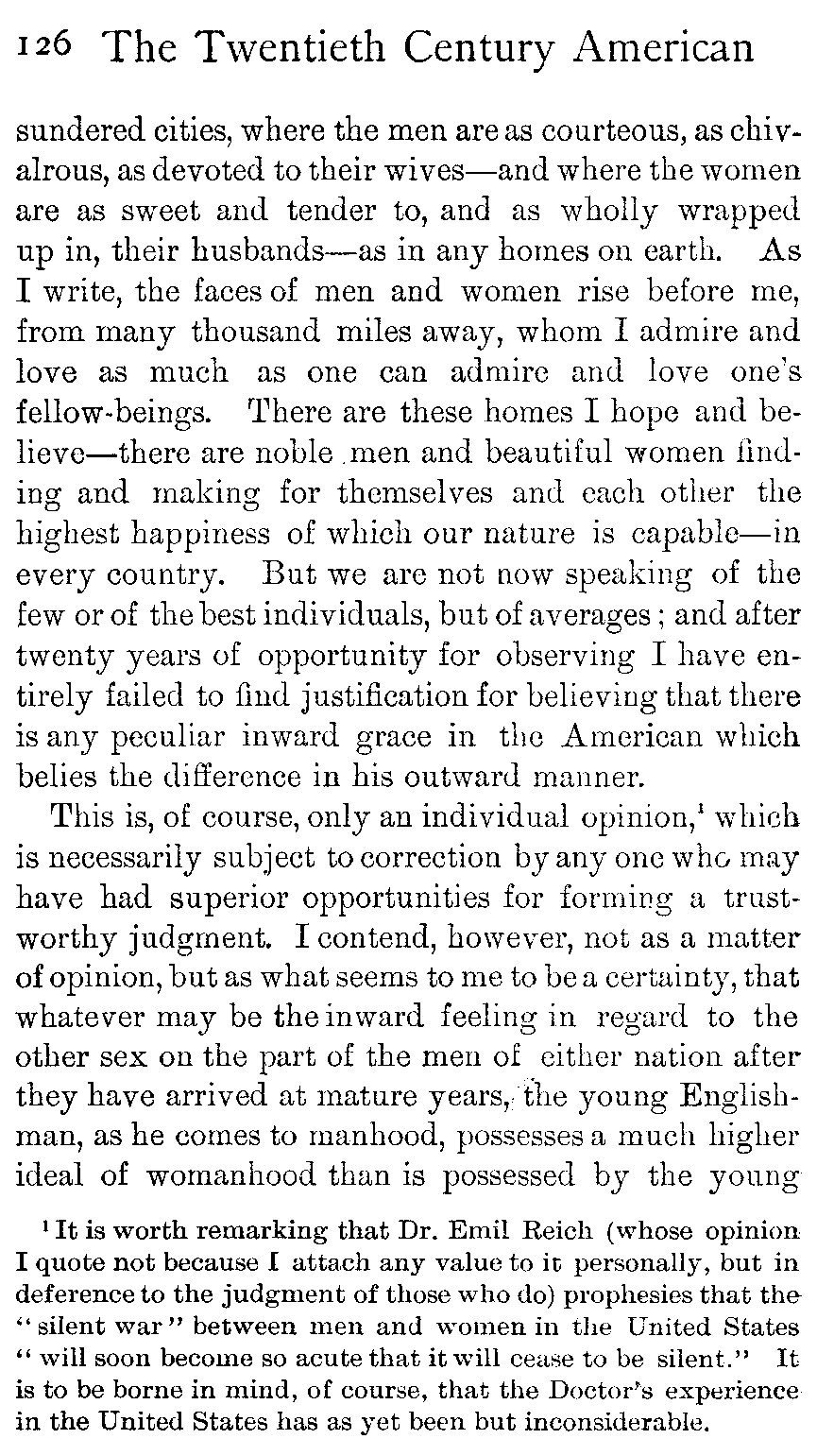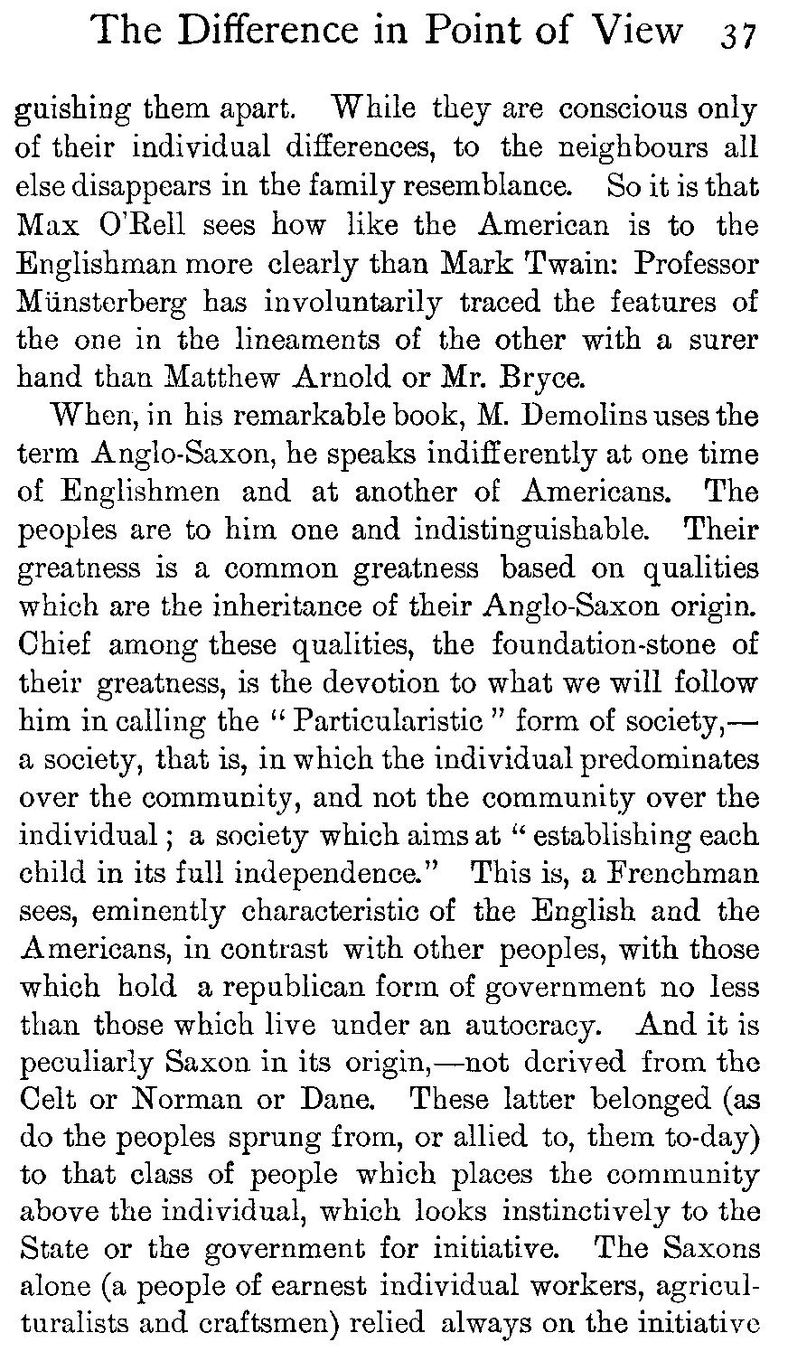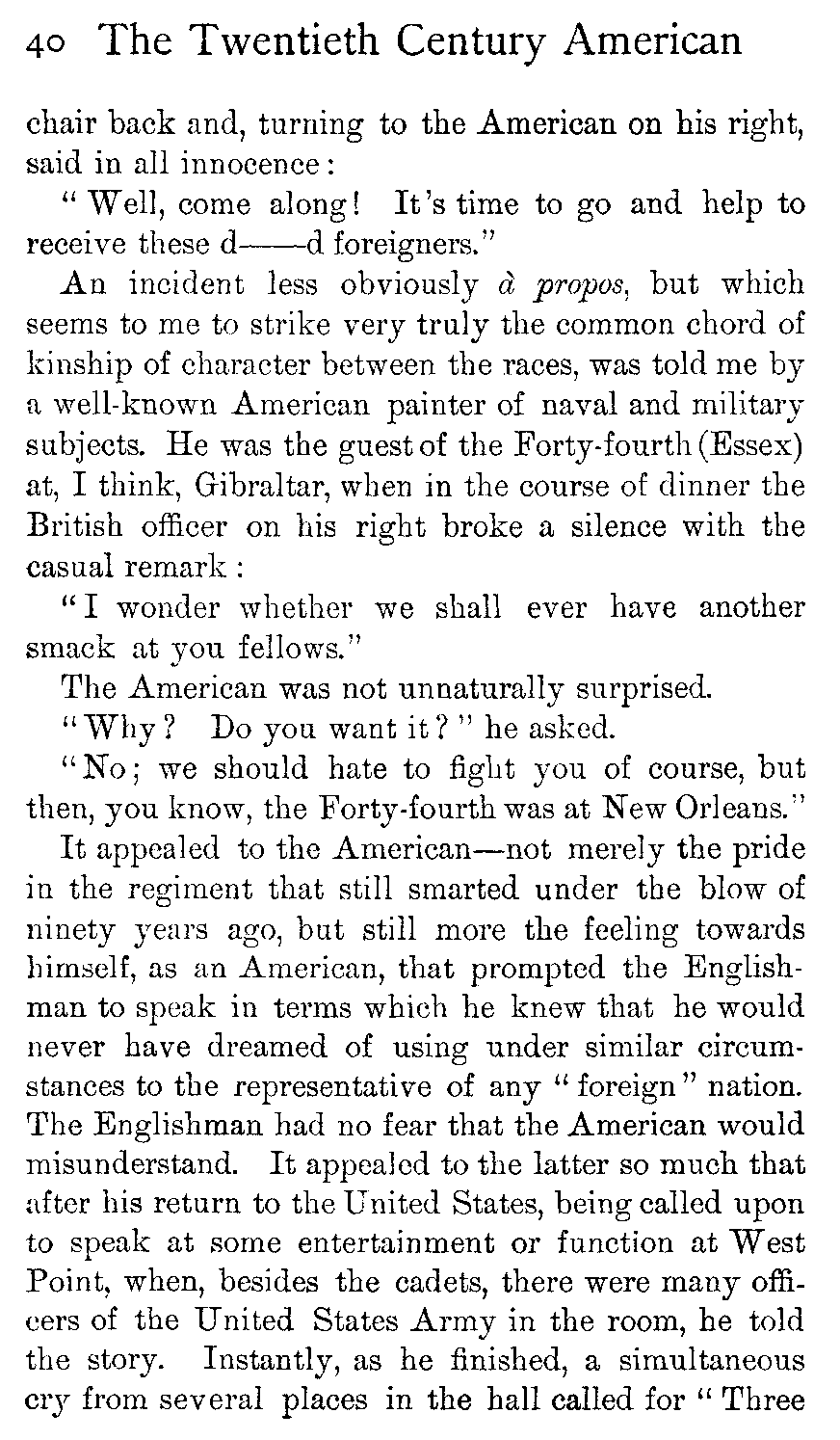 It is in the presence of such a remark, seriously made by so excellently capable a foreigner, that the Englishman and American ought to be able to shake hands and realise how much of a kin they are and how far removed from some other peoples.
