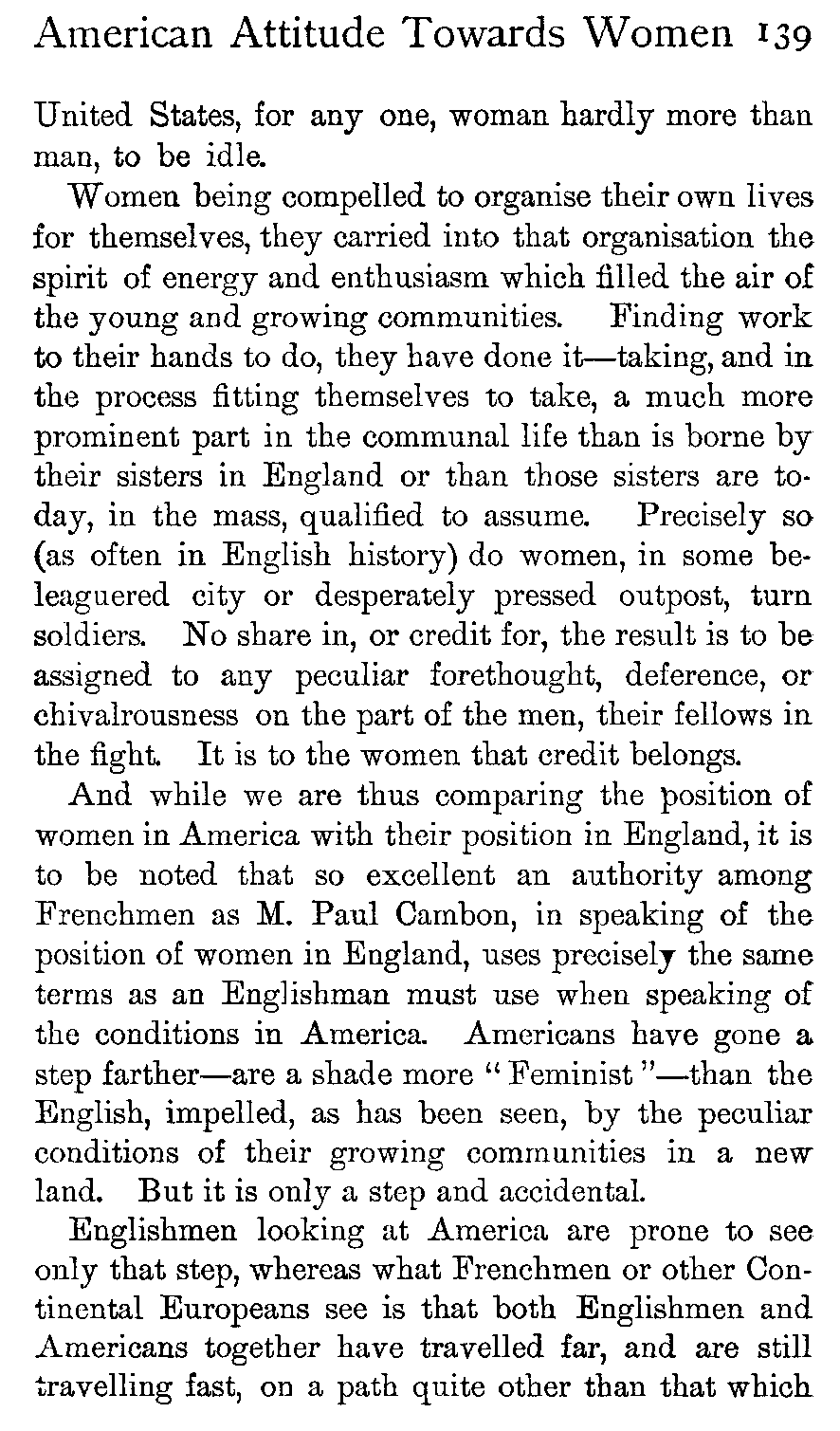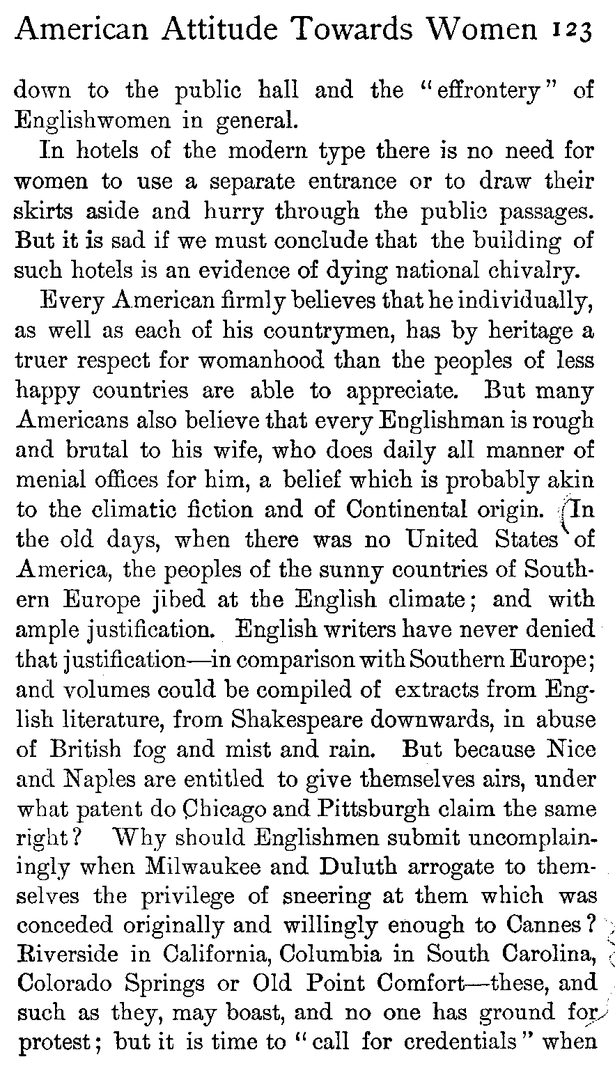 | The American Attitude towards Women | 111 |