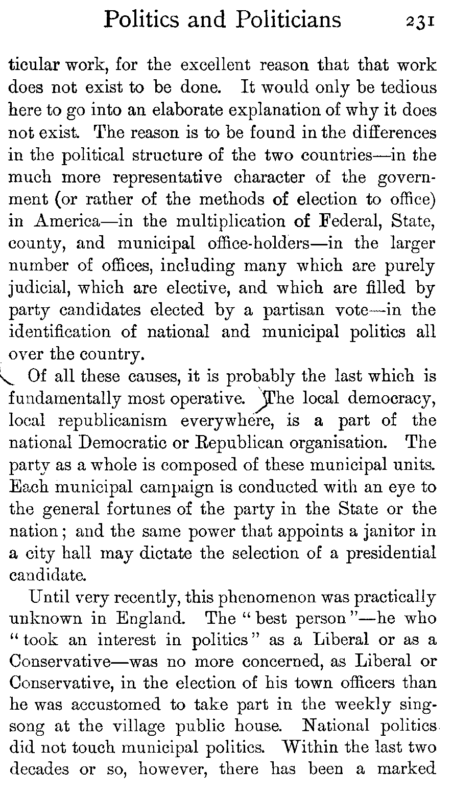 | The System of Parties—Interdependence of National and Local Organisations—The Federal Government and Sovereign States—The Boss of Warwickshire—The Unit System—Prime Minister Crooks—Lanark and the Nation—New York and Tammany Hall—America's Superior Opportunities for Wickedness—How England Is Catching up—Campaign Reminiscences—The "Hell-box"—Politics in a Gravel-pit—Mr. Hearst and Mr. Bryan. | |