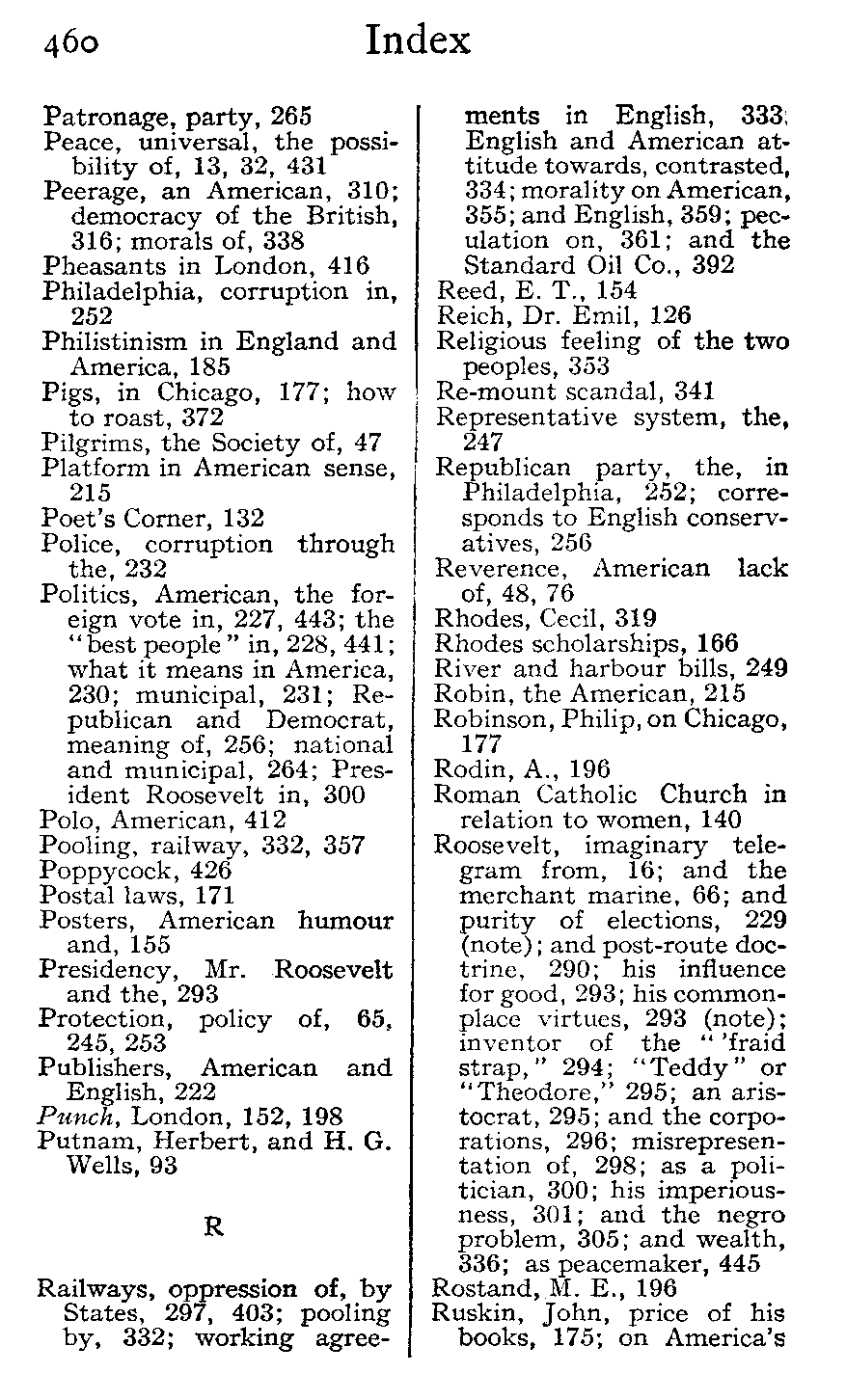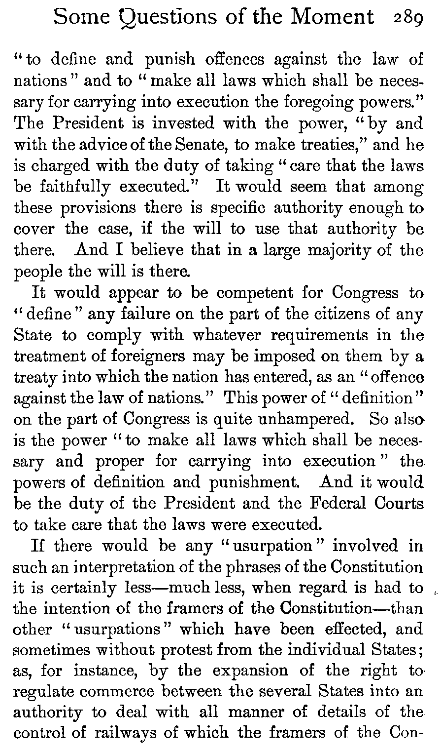 Sovereign States and the Federal Government—California and the Senate—The Constitutional Powers of Congress and the President—Government by Interpretation—President Roosevelt as an Inspiration to the People—A New Conception of the Presidential Office—"Teddy" and the "fraid strap"—Mr. Roosevelt and the Corporations—As a Politician—His Imperiousness—The Negro Problem—The Americanism of the South. |