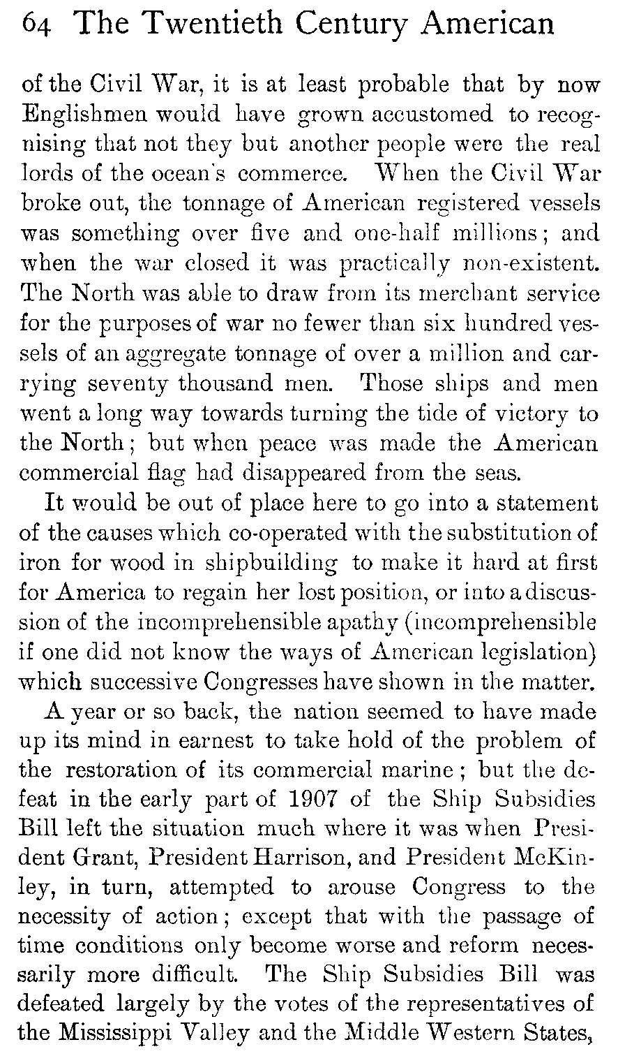 For the United States had had no such constant burden of anxiety, no perpetual friction with other peoples, to keep her occupied. Rather, sitting aloof in her isolation she had looked upon all the Powers of Europe as actors in a great drama with which she had no other than a spectacular concern. Only of all the Powers, by the very accident of common origin, by the mere circumstances of the joint occupation of the [434]continent, Great Britain alone has been constantly near enough to the United States to impinge at times upon her sphere of development, to rub against her, to stand in her way. Great Britain herself has hardly known that this was so. But it has had the effect to make Great Britain in the mind of the United States the one foreign Power most potentially hostile.
