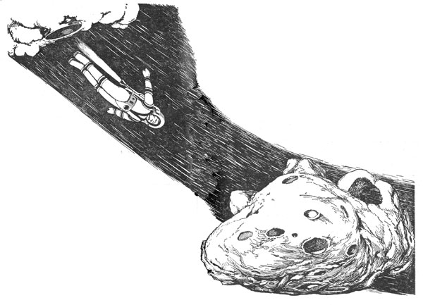 The Nipe missed the companionship his brother had given him for so long; his help would be invaluable now. But there had been no choice. There had not been enough supplies for two to survive the long fall inward toward the distant sun. The Nipe, having discovered the fact first, had, out of his mercy and compassion, killed his brother while the other was not looking. Then, having eaten his brother with all due ceremony, he had settled down to the long, lonely wait.