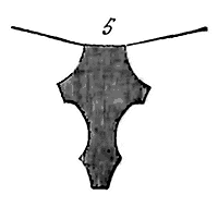 Quelquefois, lorsque les dents-de-scie de cette époque ont une petite dimension, particulièrement dans les monuments de l'Ouest, elles sont taillées encore à angles droits G. Les dents-de-scie doublées ou chevauchées sont taillées ainsi que l'indique la figure 3, de façon à présenter un rang de pointes passant sur l'autre. Dans les archivoltes, souvent plusieurs rangs de dents-de-scie sont superposés, s'alternant et formant les sailles indiquées en E.