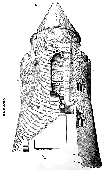 Les petites villes ou bastides bâties dans la seconde moitié du XIIIe siècle en Guienne sont entourées de fossés avec enceinte; la plupart de ces petites cités sont, ainsi que leurs défenses, d'une régularité parfaite 559. À propos de la bastide de Sauveterre, M. Leo Drouyn, dans l'excellent ouvrage qu'il publie sur la Guienne militaire, donne le texte des priviléges accordés à cette commune, en 1283, par Édouard Ier. Dans ce texte latin 560, nous lisons l'article suivant relatif aux enceintes et fossés: