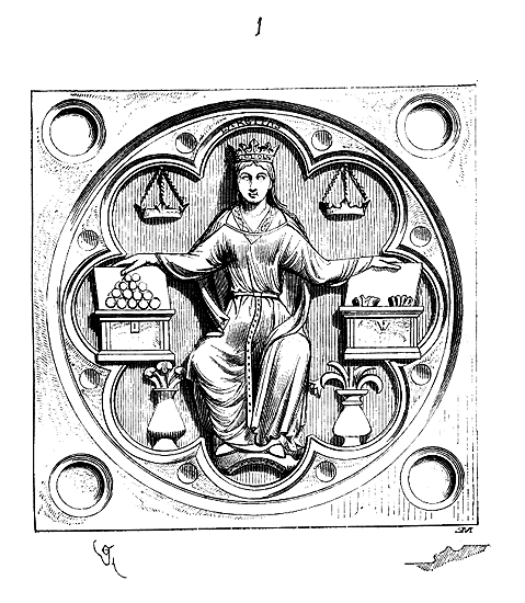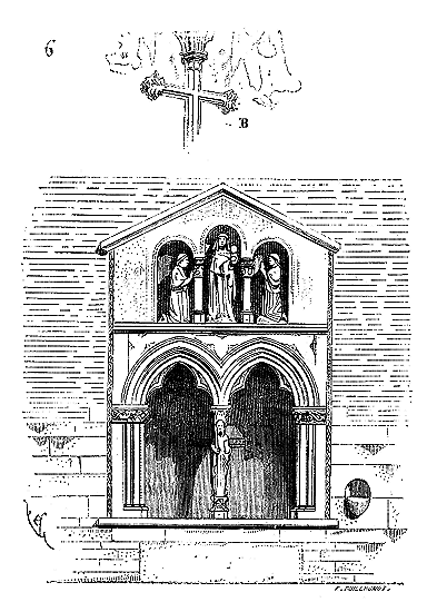 À la porte principale de l'église abbatiale de Vézelay (premières années du XIIe siècle), le cordon de médaillons qui entourent le grand tympan représentant le Christ et les douze apôtres, renferme les douze signes du zodiaque entremêlés des travaux mensuels correspondants. Ce zodiaque est un des plus complets que nous connaissions. La porte de droite de la façade de l'église abbatiale de Saint-Denis montre encore sur ses pieds-droits quelques sujets et signes d'un zodiaque qui peut-être était complet, mais qui a été détruit en partie. Dans ce zodiaque, le médaillon qui correspond au premier mois de l'année représente un homme à deux têtes, l'une vieille, l'autre jeune. Du côté de la tête de vieillard, le bras pousse une petite figure barbue dans un édicule dont la porte se ferme: c'est l'année expirée; l'autre main attire une figure imberbe hors d'un édicule dont la porte s'ouvre: c'est l'année qui commence.